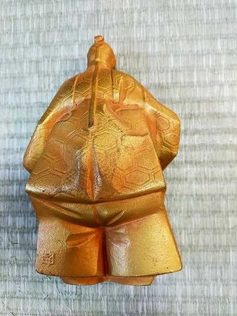 素封家の友人と共同で友人の蔵の整理をすすめています。 いろいろなものが、埃まみれのままで放置してありました。 床の間に置く翁像です。ほとんど使用された形跡はありません。 鉄製でかなり重く2キログラムあります。高さは19cmです。