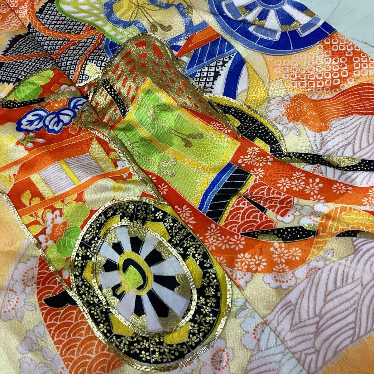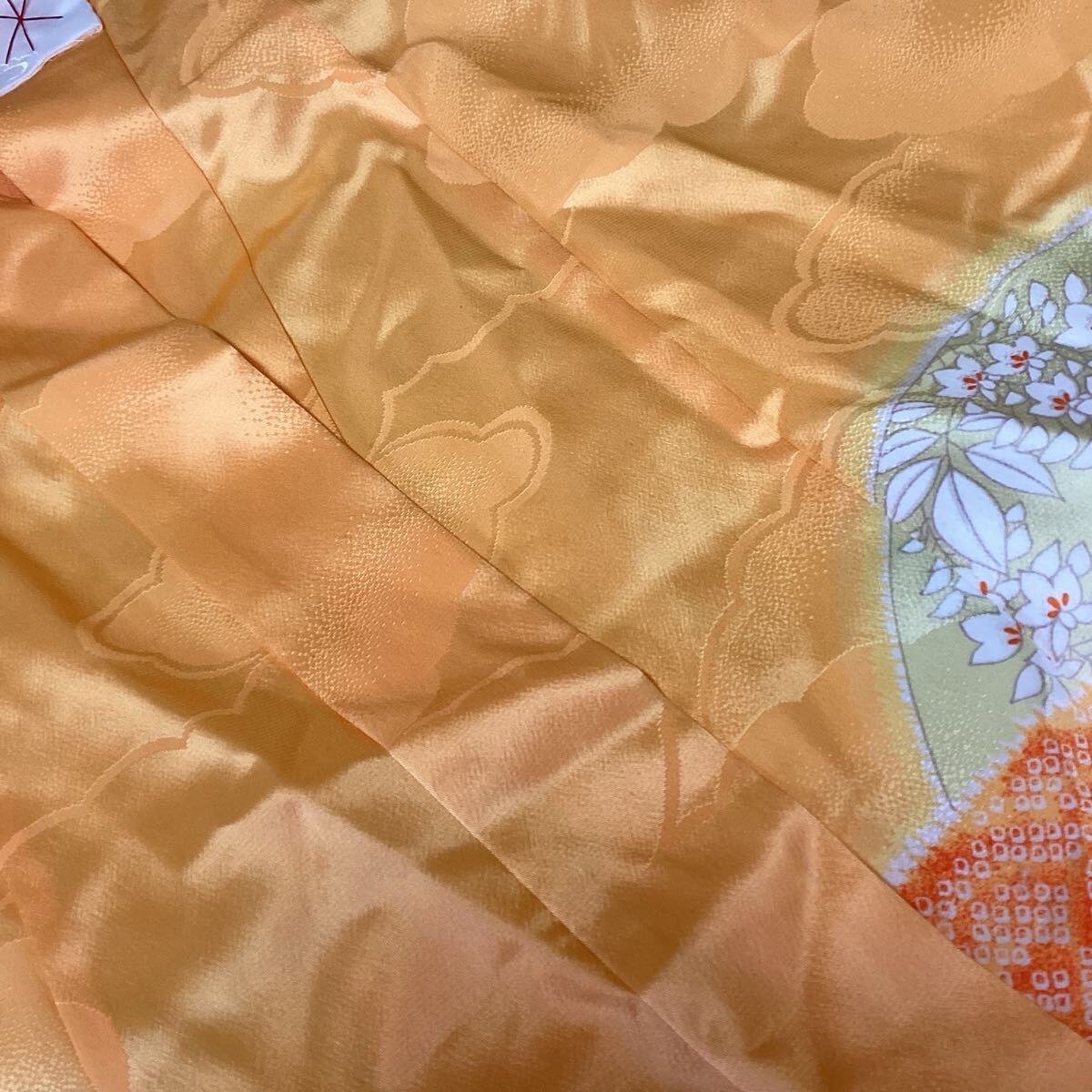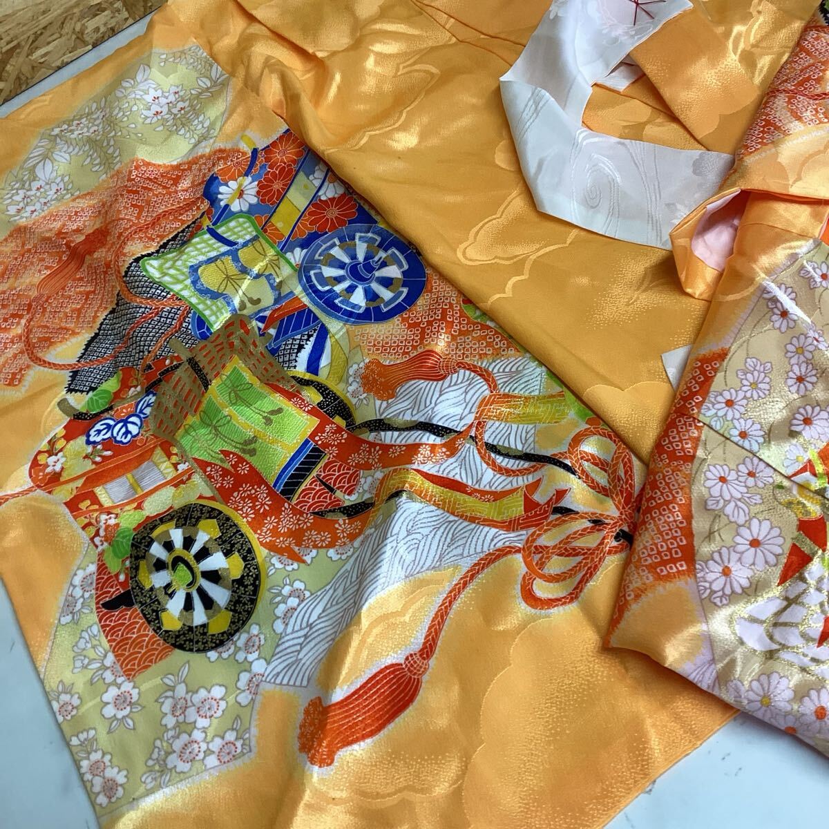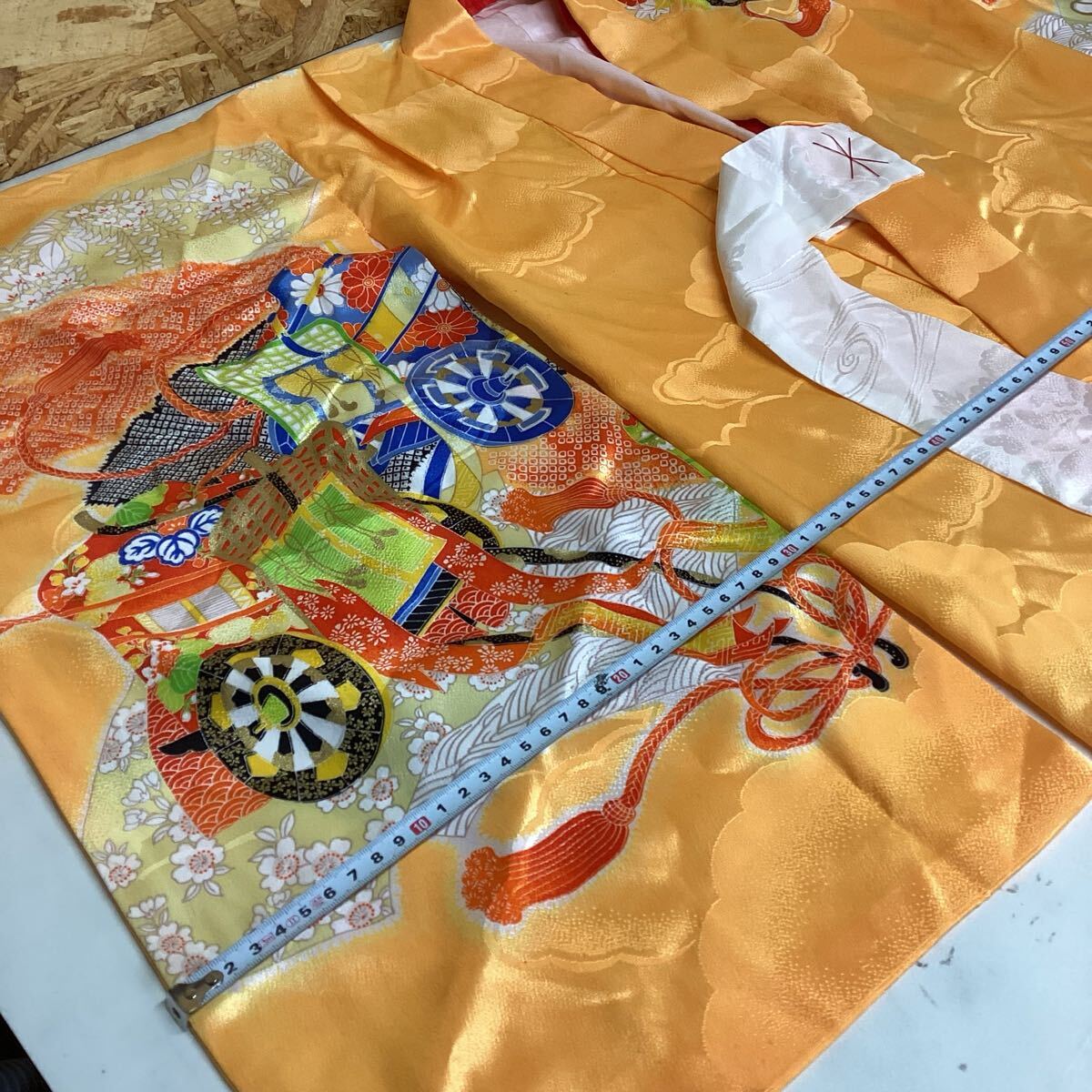 和装 着物 七五三 お正月 オレンジ 派手 鮮やか 綺麗な和柄 (さ89)