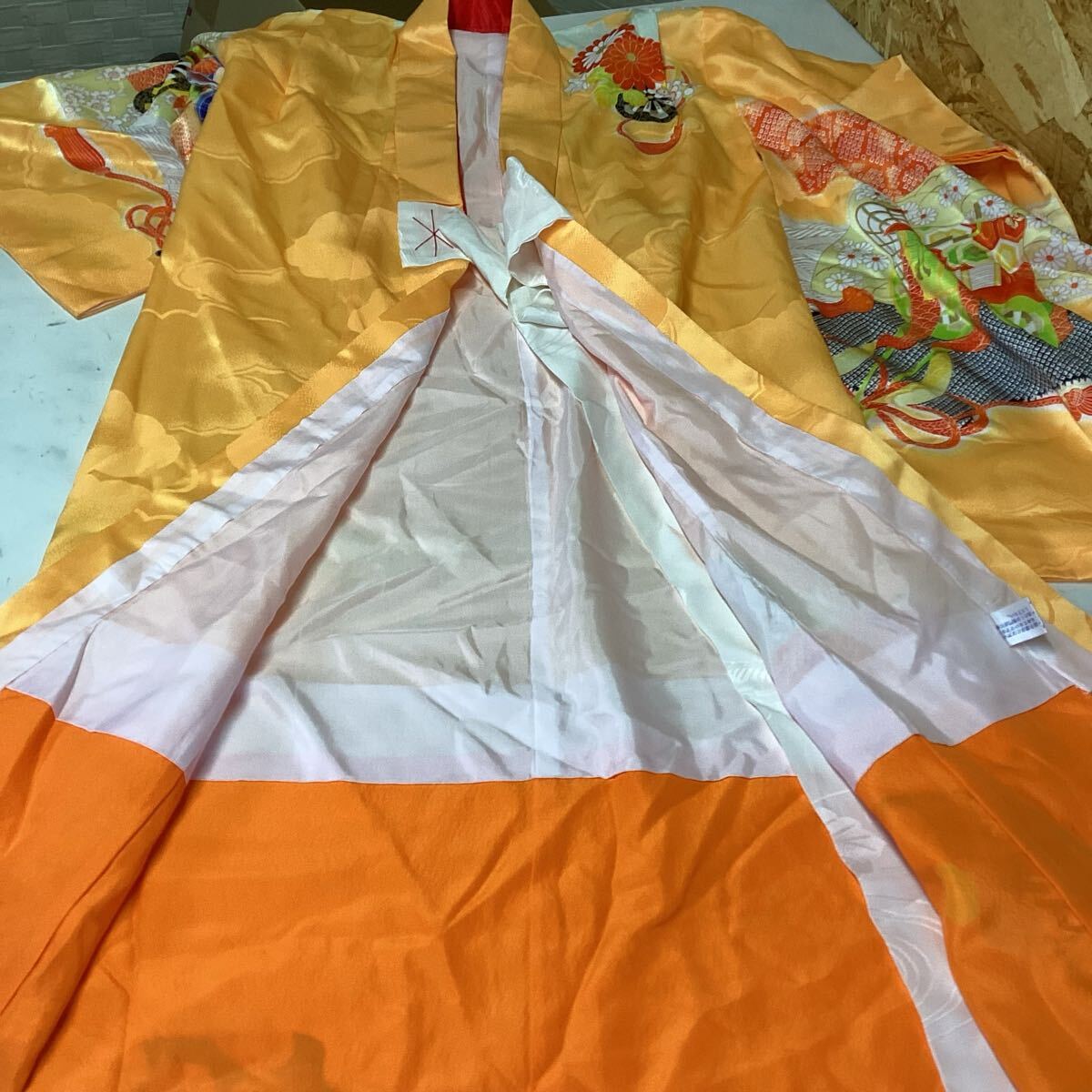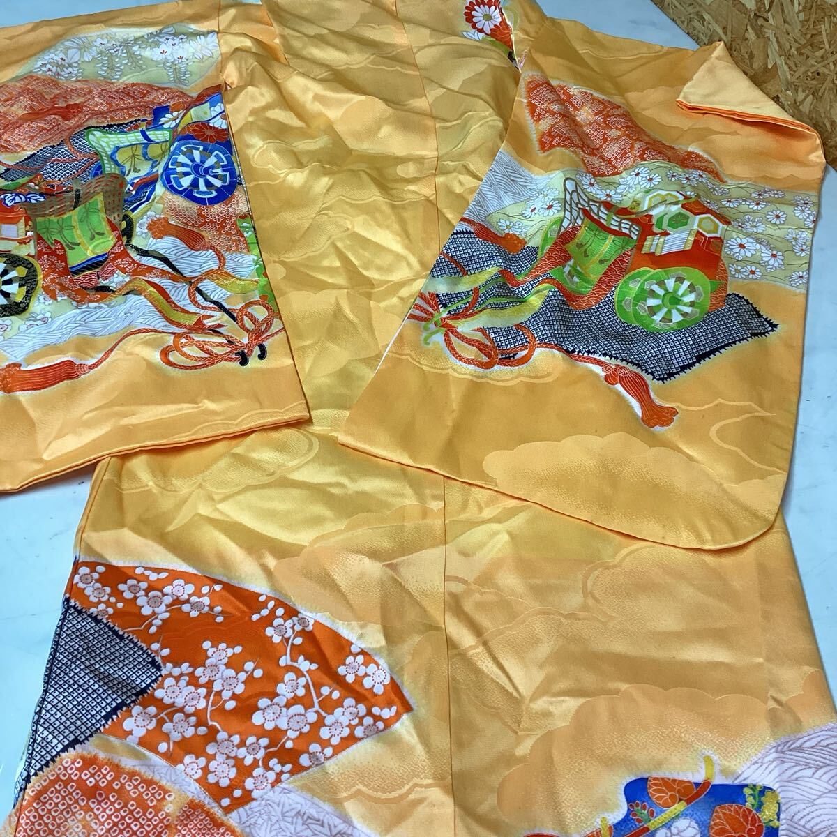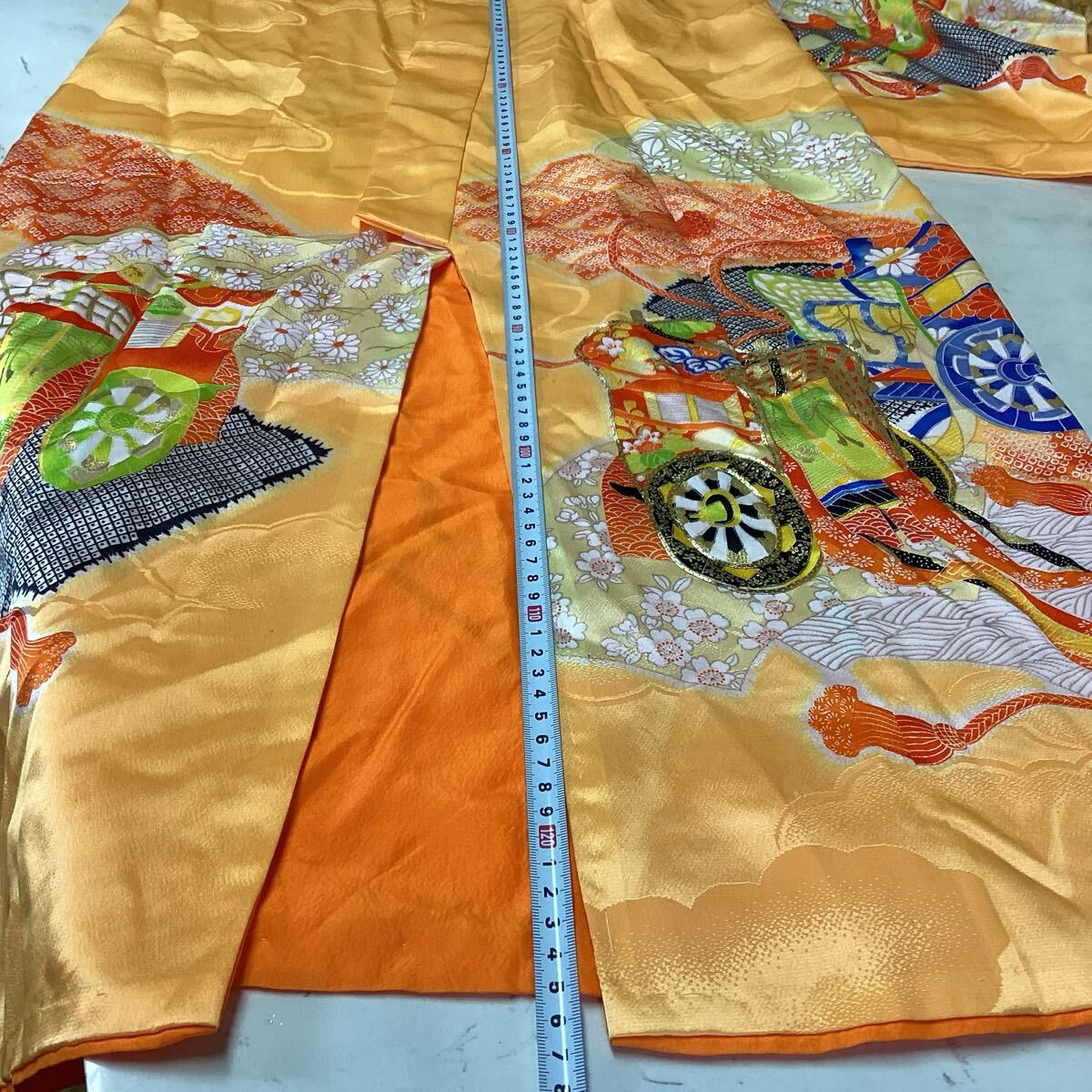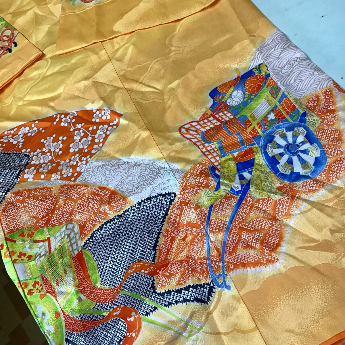 和装 着物 七五三 お正月 オレンジ 派手 鮮やか 綺麗な和柄 (さ89)