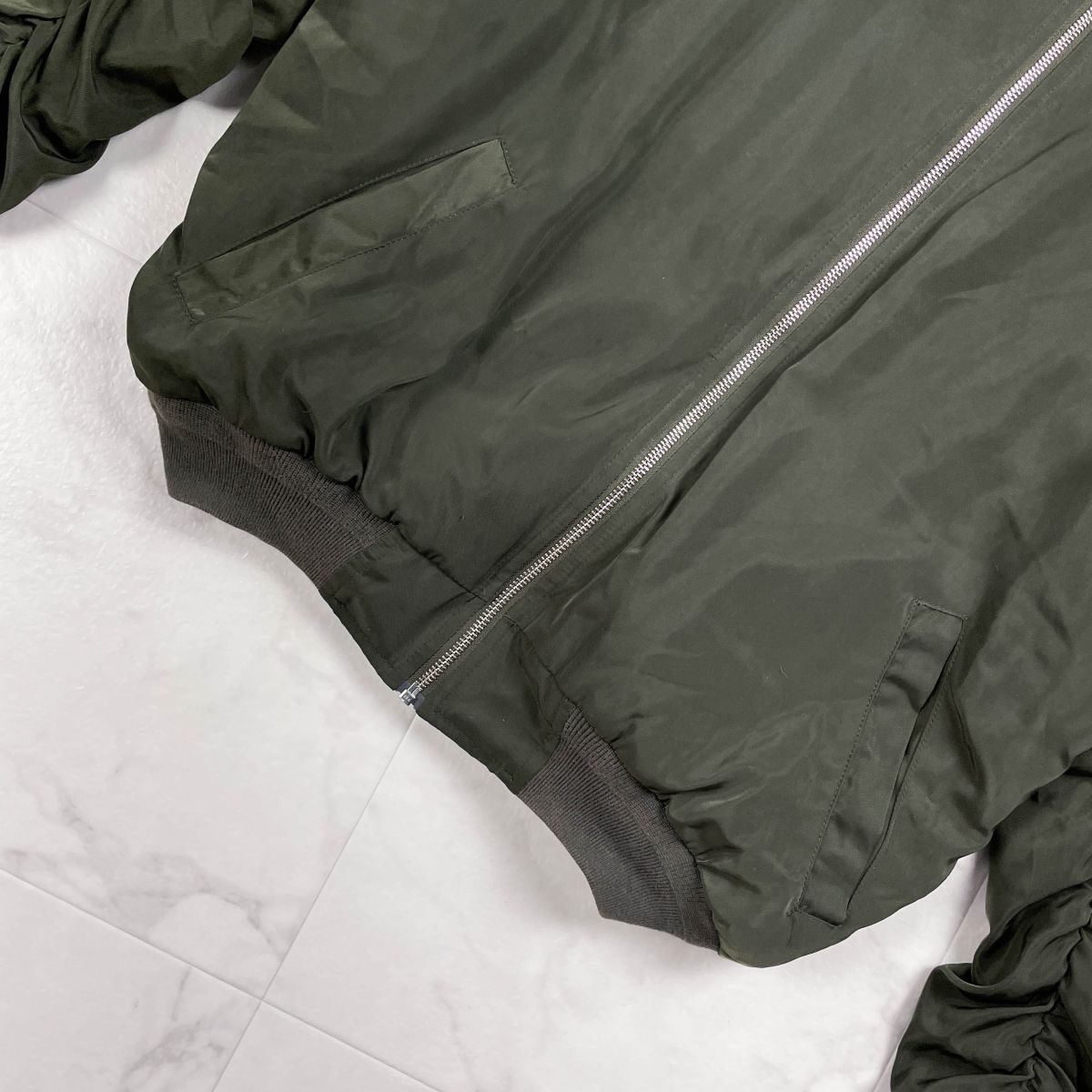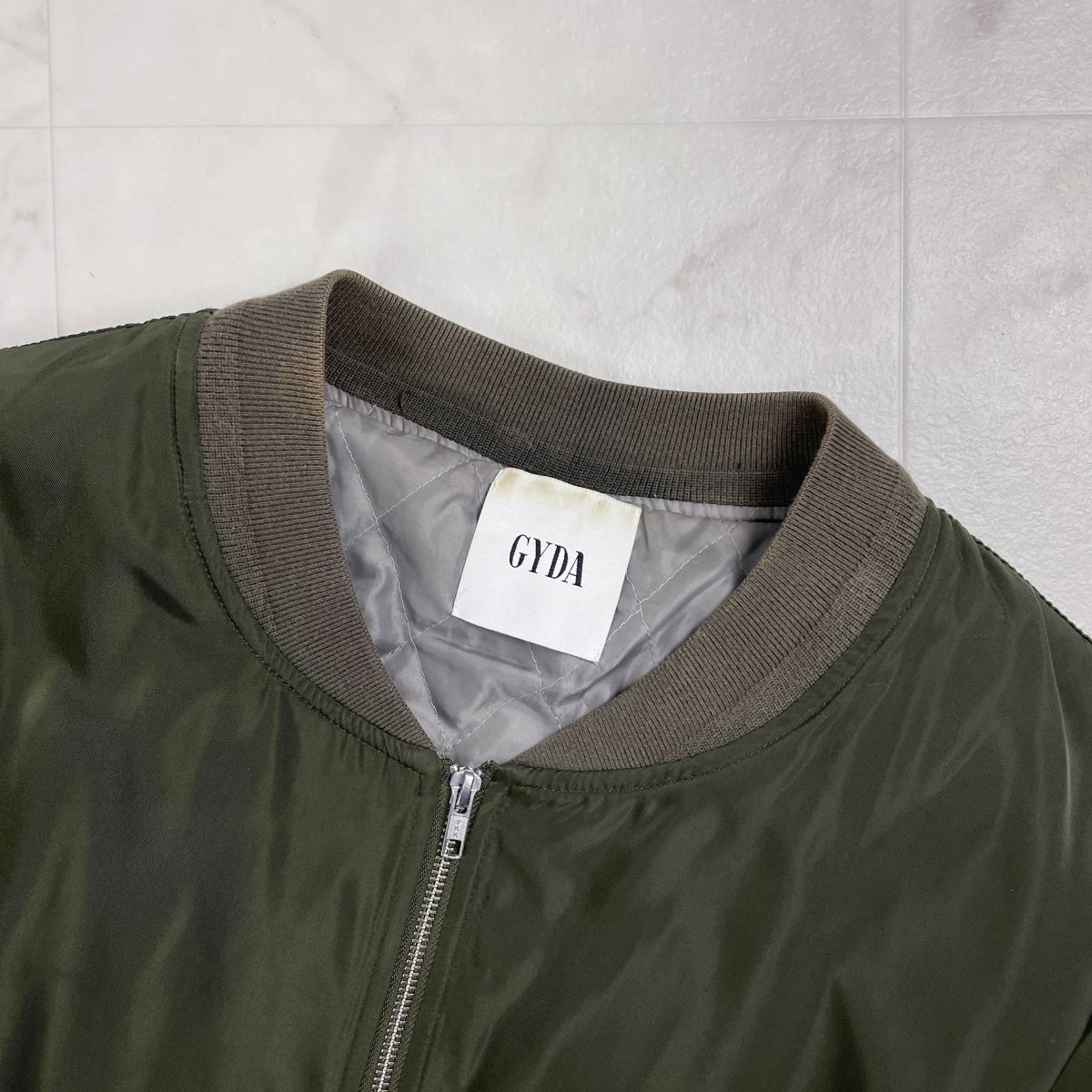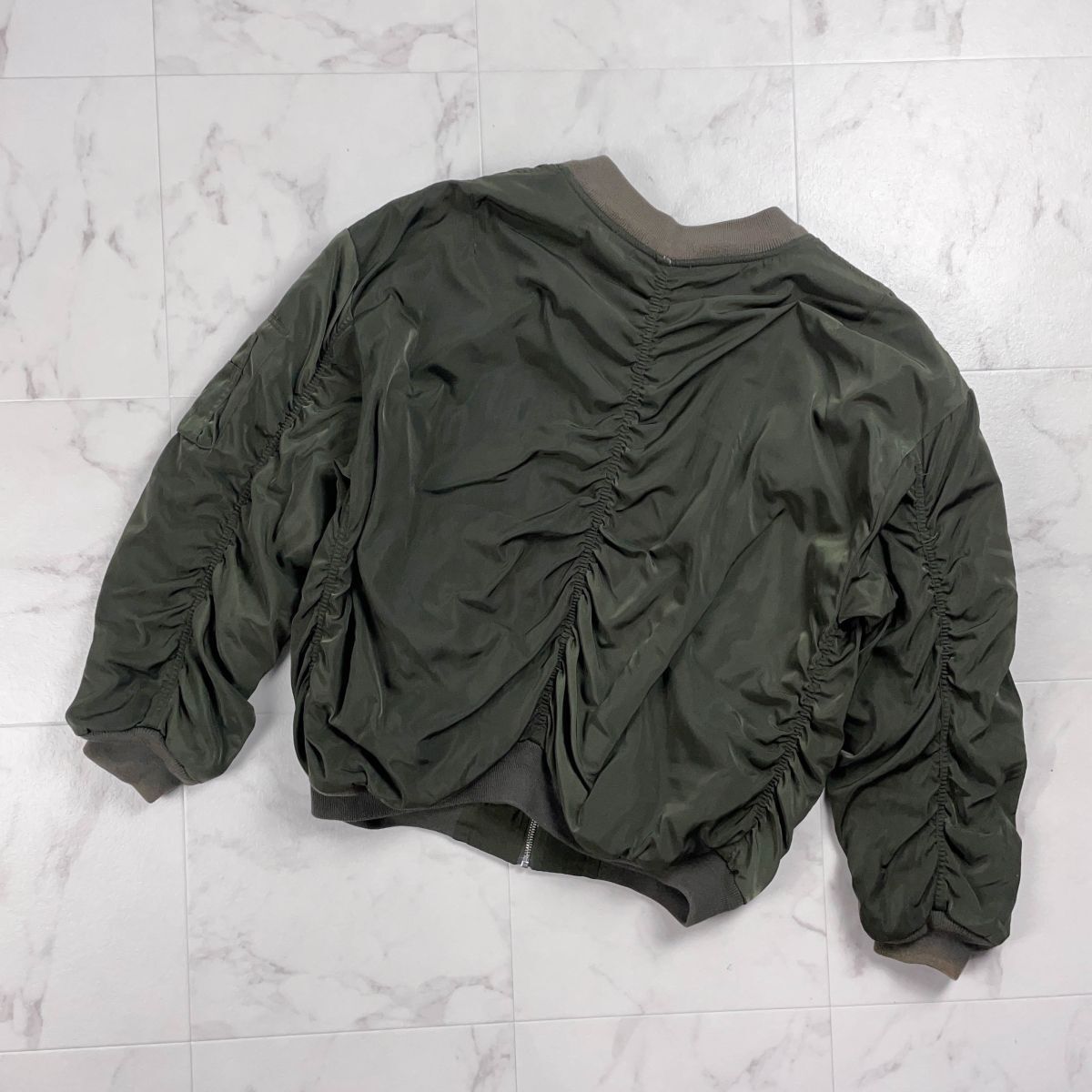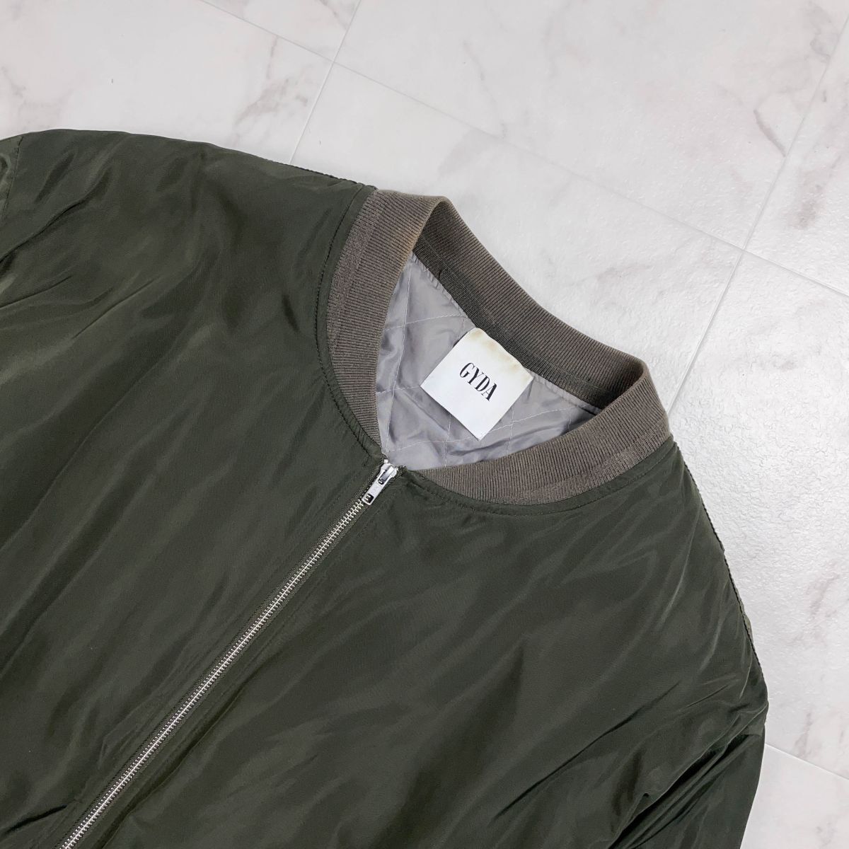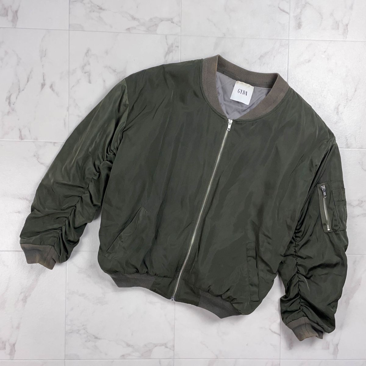 美品 GYDA ジェイダ MA-1 ミリタリーブルゾン シャーリング フロントジップ レディース カーキ グリーン 緑 サイズF*YC501