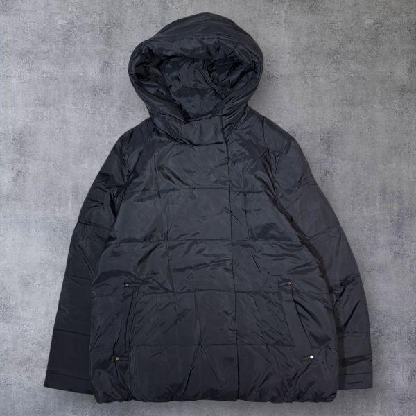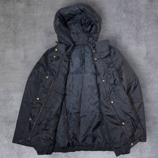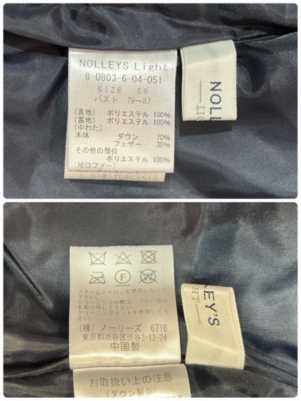 ★美品★NOLLEY'S★フード付ダウンジャケットsize38 ネイビー系 Wファスナー ノーリーズ クリーニング プレス済み 古着 1931