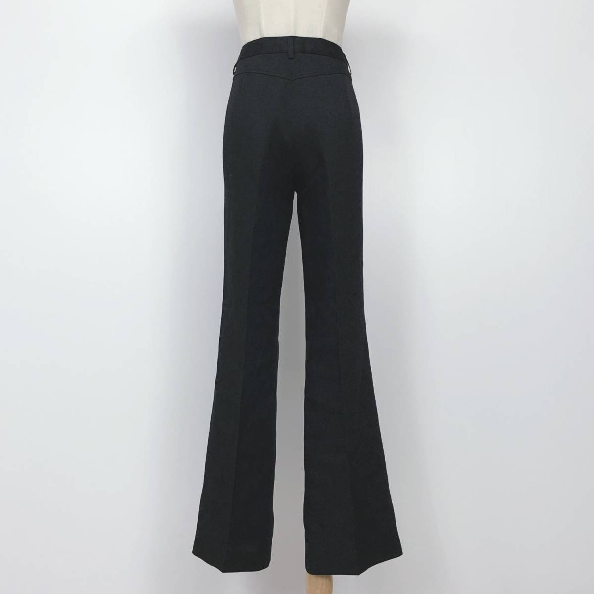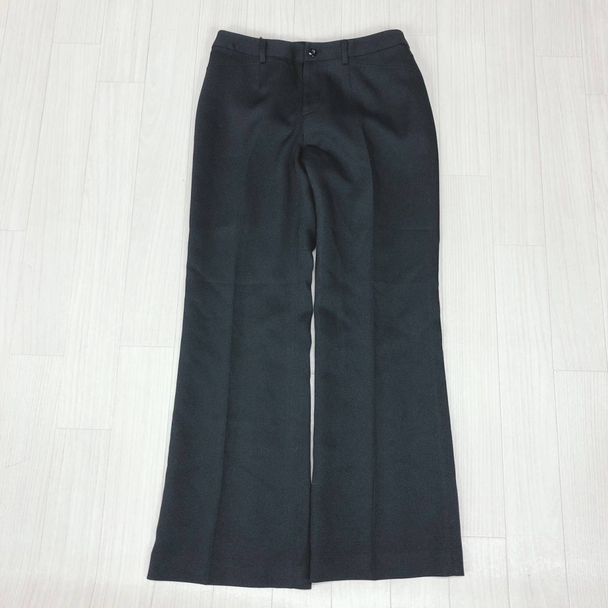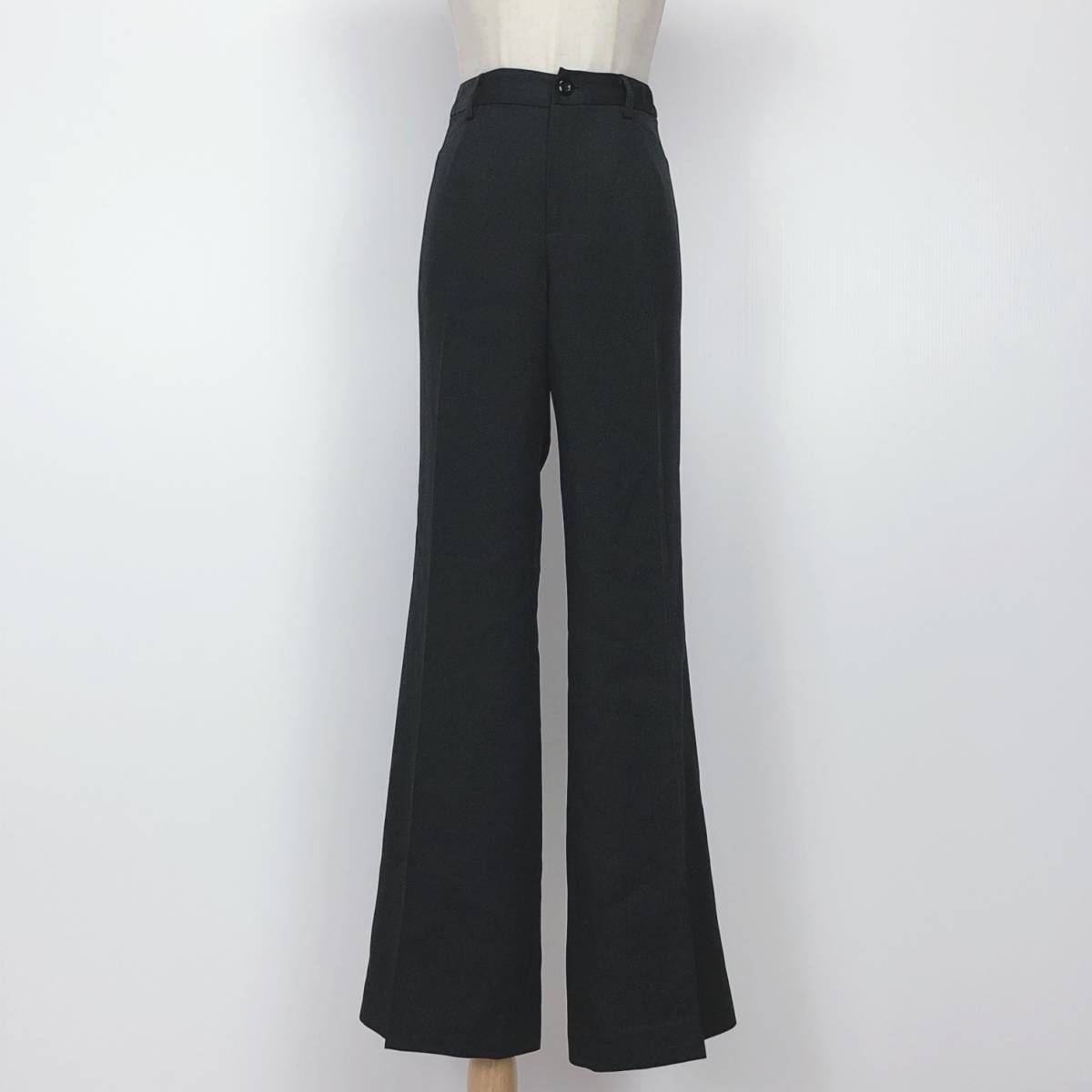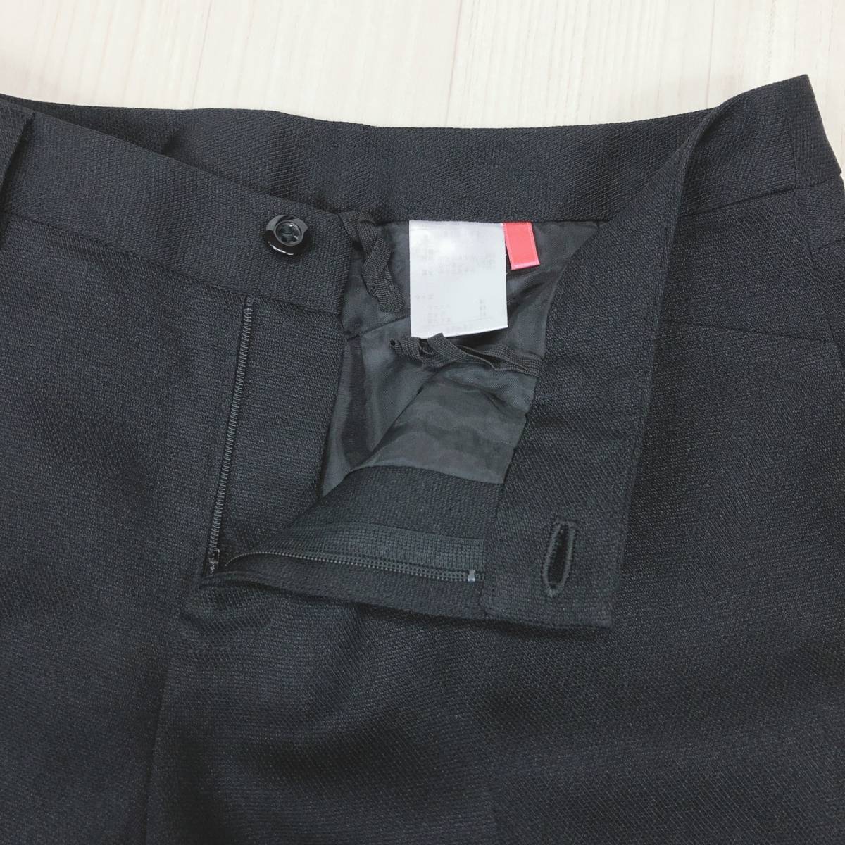 YX403 美品 レディース パンツ サイド・後ろポケットフェイク ボタン・チャック 裏地あり 薄手 ブラック 黒 シック クール シンプル 春秋