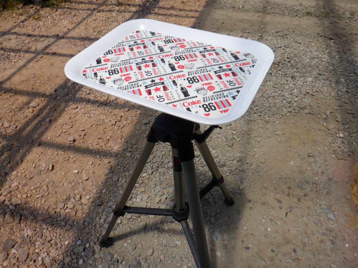 カメラ用の三脚を利用した 小物を置く台が意外と重宝します