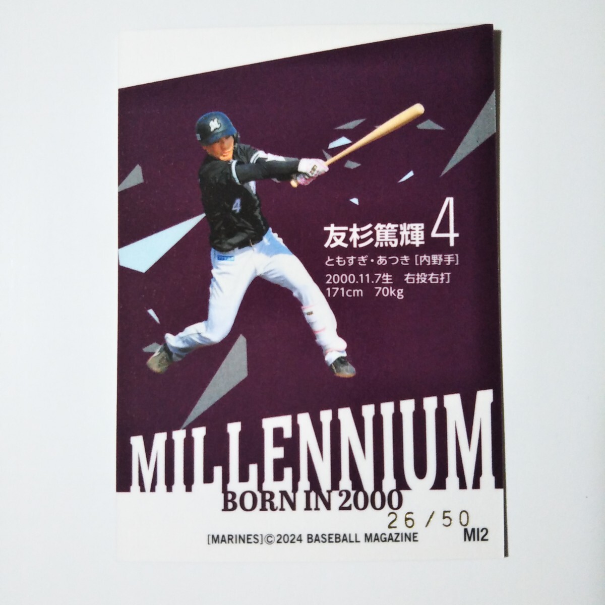 BBM2024 ロッテ 友杉篤輝 50枚限定 金紙ホロPP版 パラレル インサートカード Millennium MI2