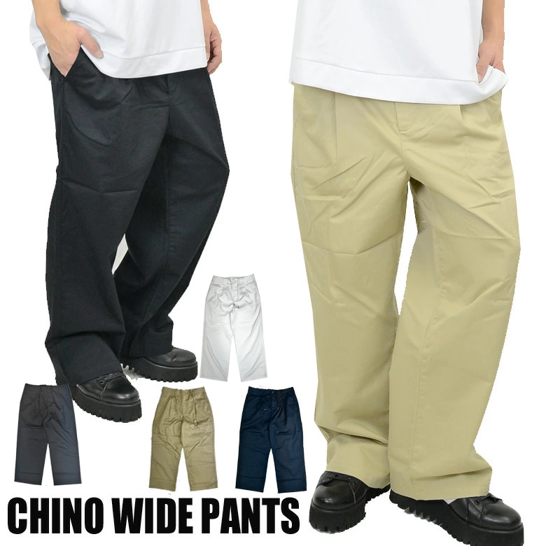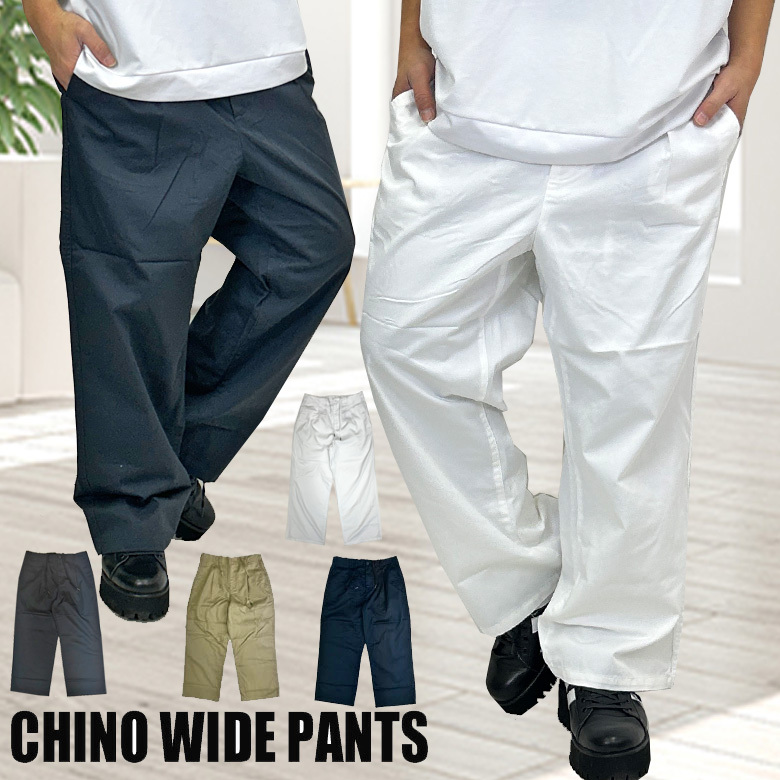 ゆったりとしたワイドシルエットとイージーな穿き心地が魅力のチノワイドパンツ。