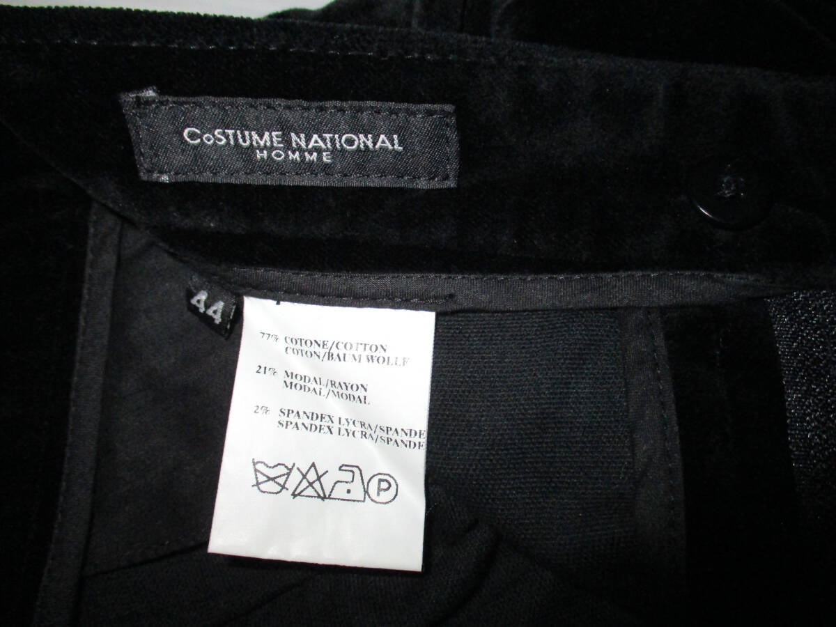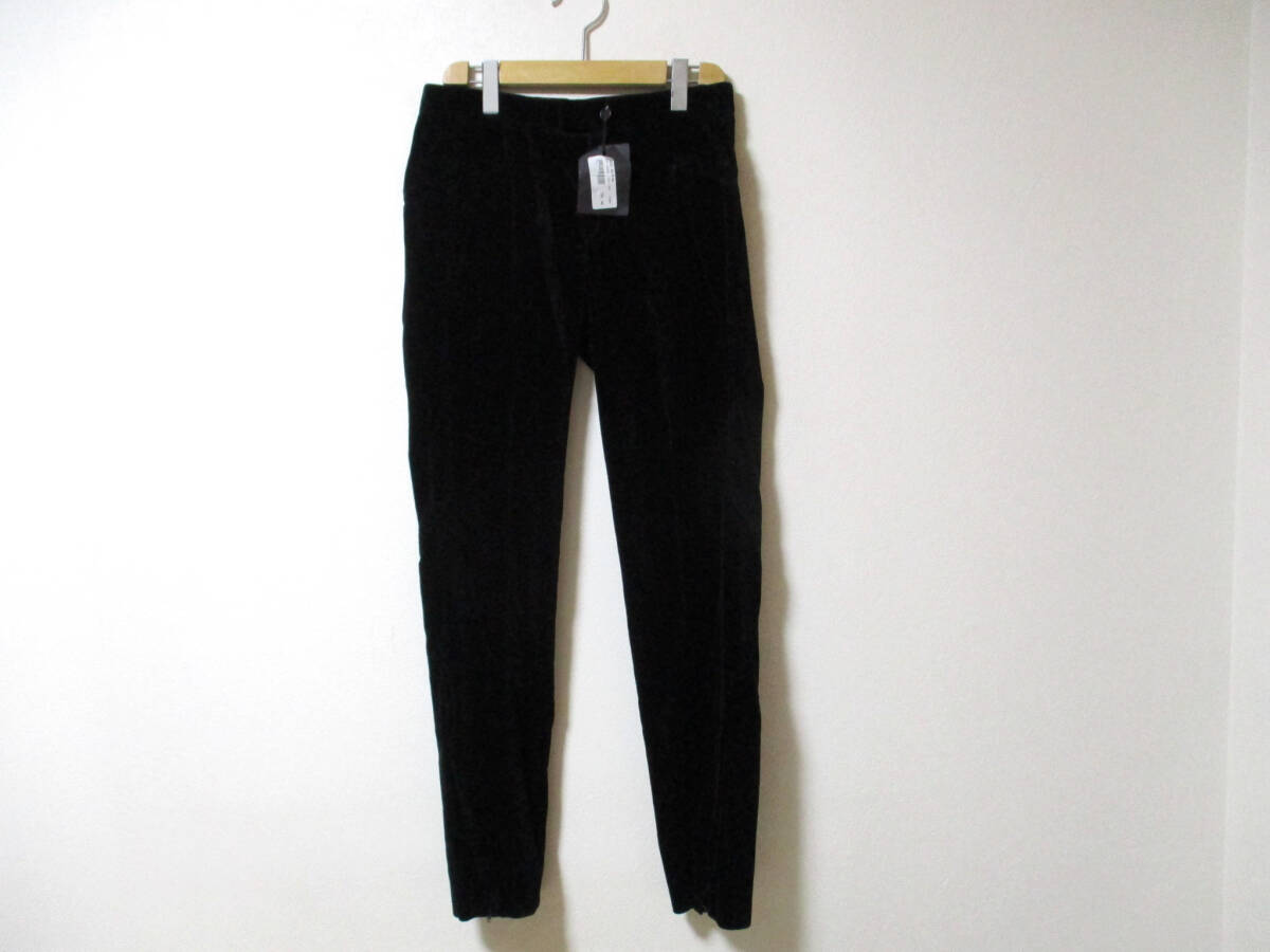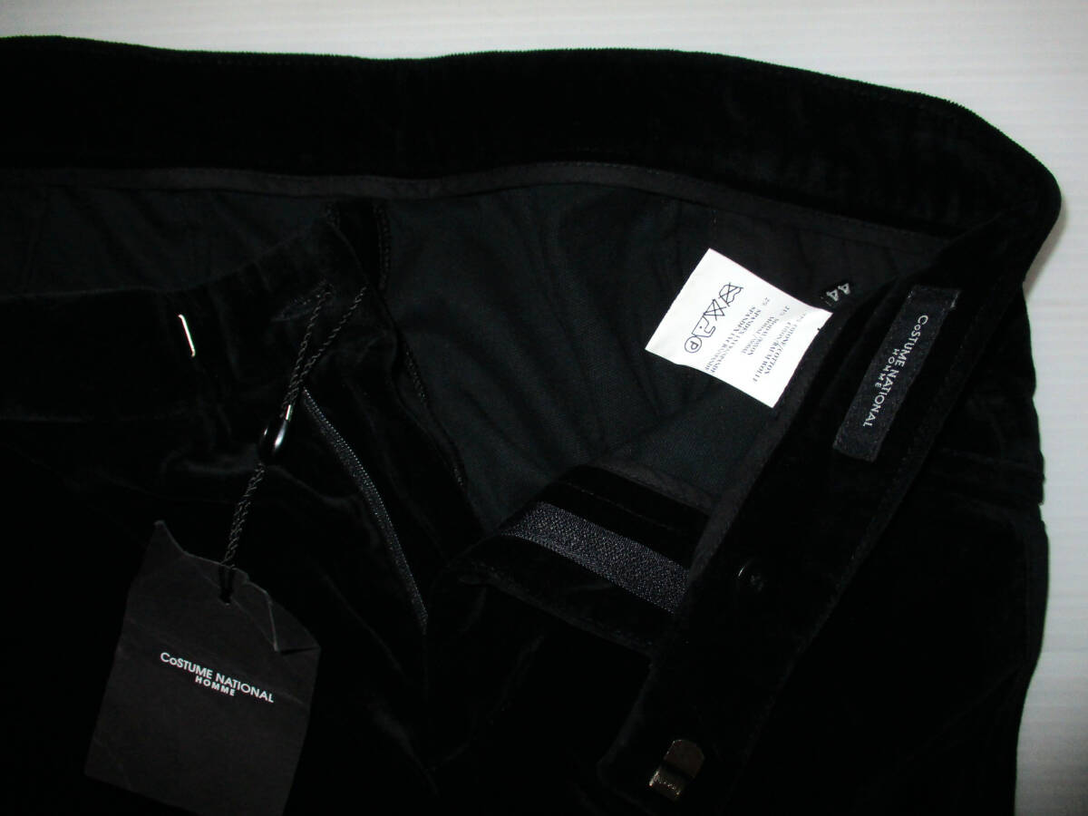 未使用★コスチュームナショナルオム CoSTUME NATIONAL HOMME ベロア調パンツ 黒 サイズ44 です。イタリア製です。イタリア製の正規品です。素材は コットン 77、レーヨン21、SPANDEX LYCRA 2です。ベロアぽい素材感です。色は黒系です。 色は画像でご判断ください。(画像7)裾はジッパーにより開きます。