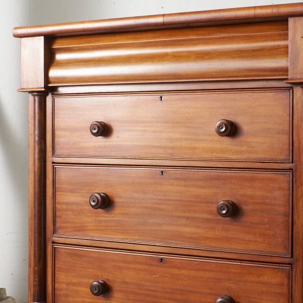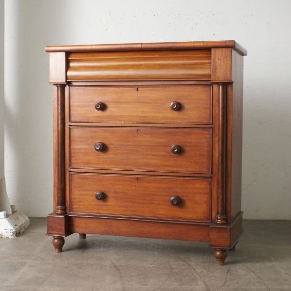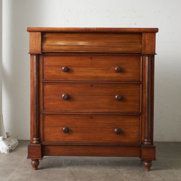 木目が美しい良質なマホガニー材が使用されたチェスト。上品なデザインや随所に拘りのディテールが見られるクオリティの高い逸品です。