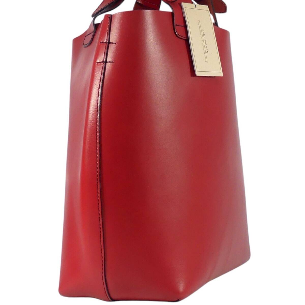 即決★ZARA★未使用 オールレザーハンドバッグ ザラ 2way 赤 本革 手提げバッグ 本皮 ショルダー 旅行 カバン 出張 鞄