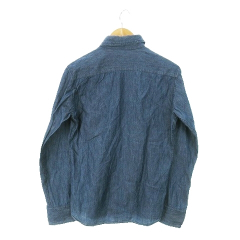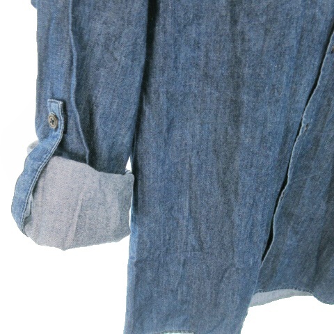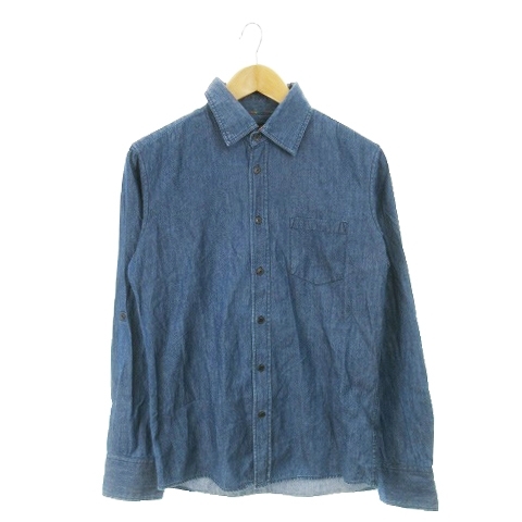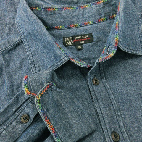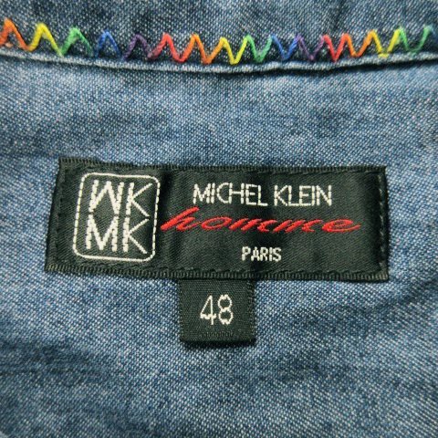 エムケーミッシェルクランオム MK MICHEL KLEIN HOMME シャツ シャンブレー デニム 長袖 ロールアップ 襟裏刺繍 コットン 48 紺 ネイビー /AH9 メンズ