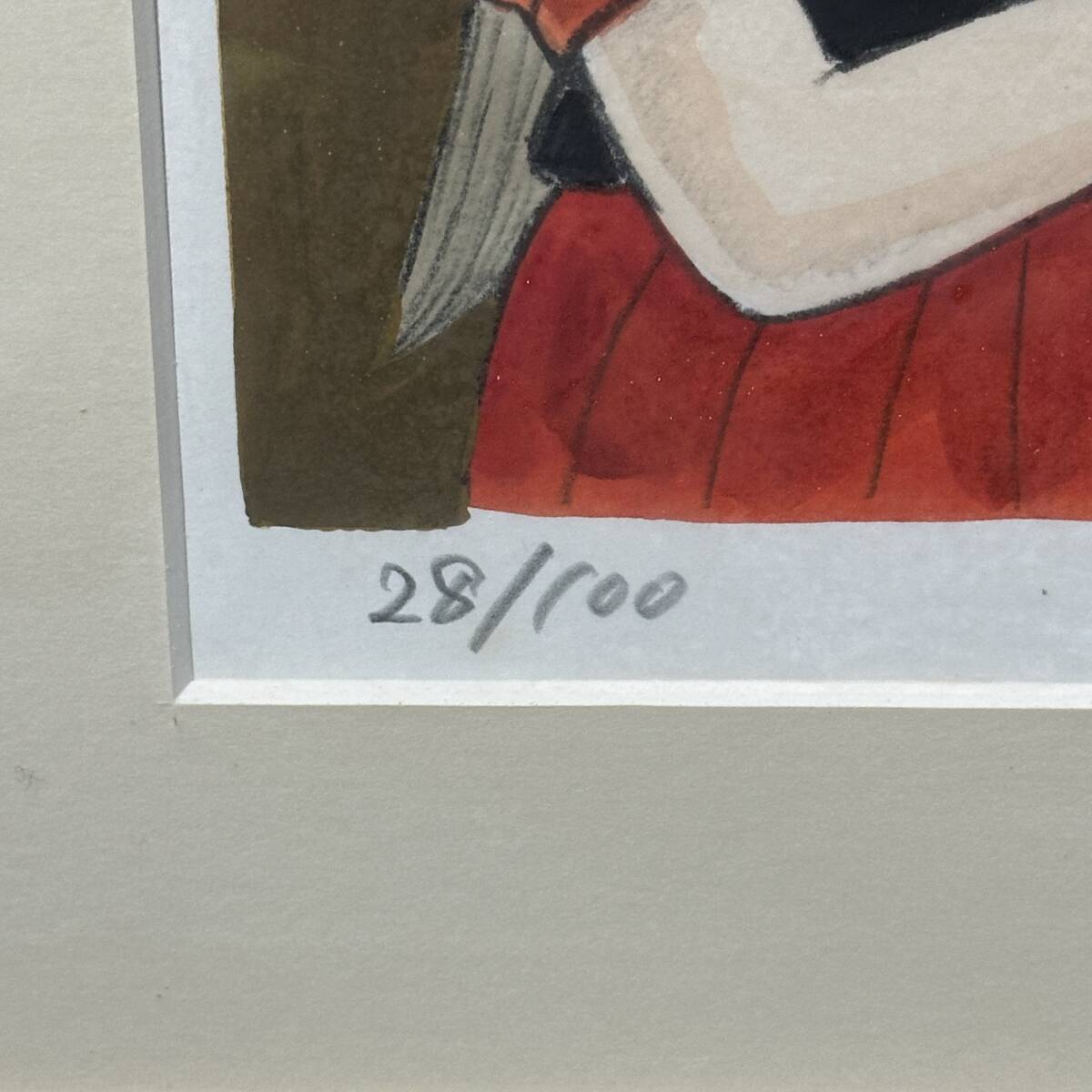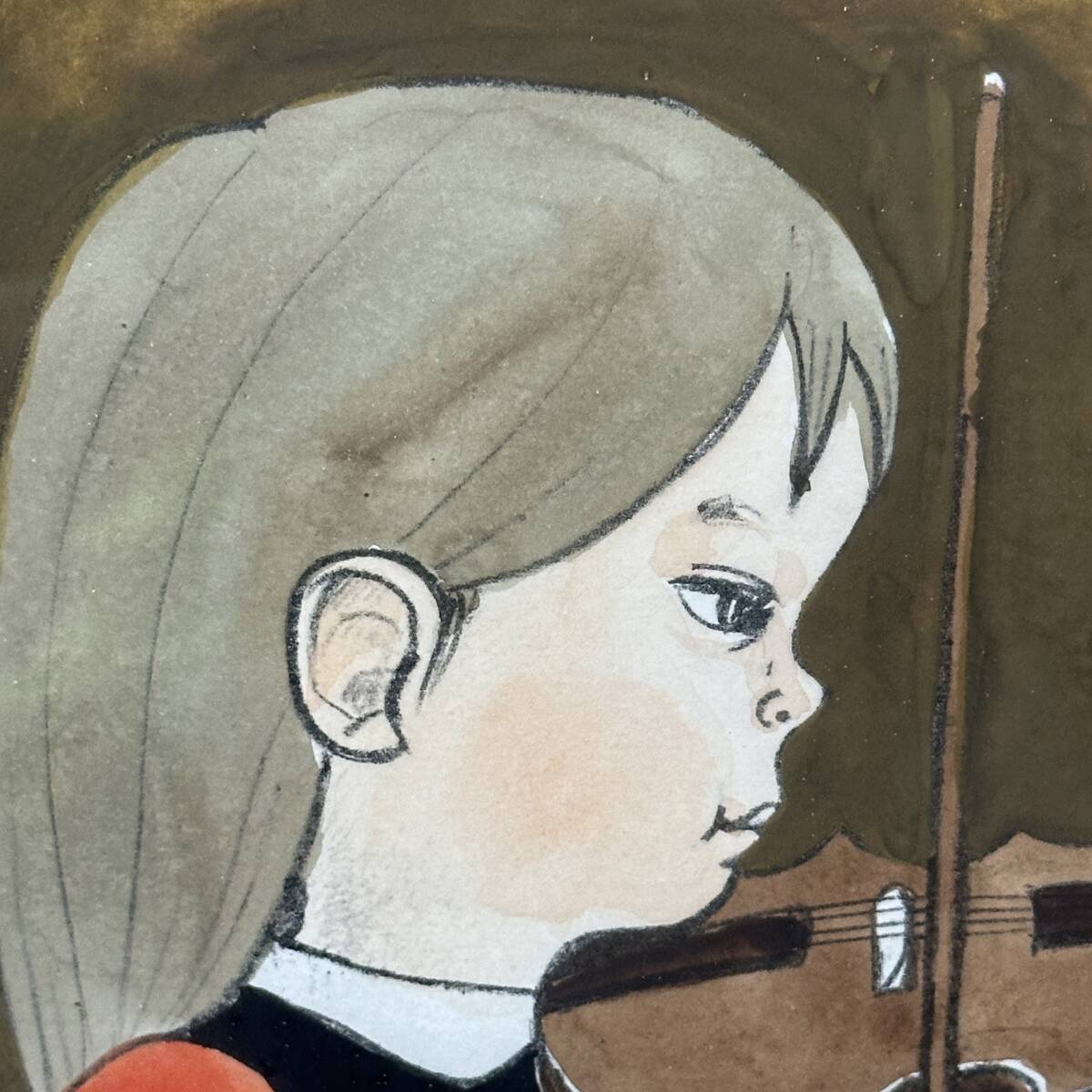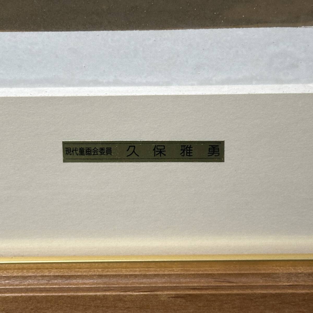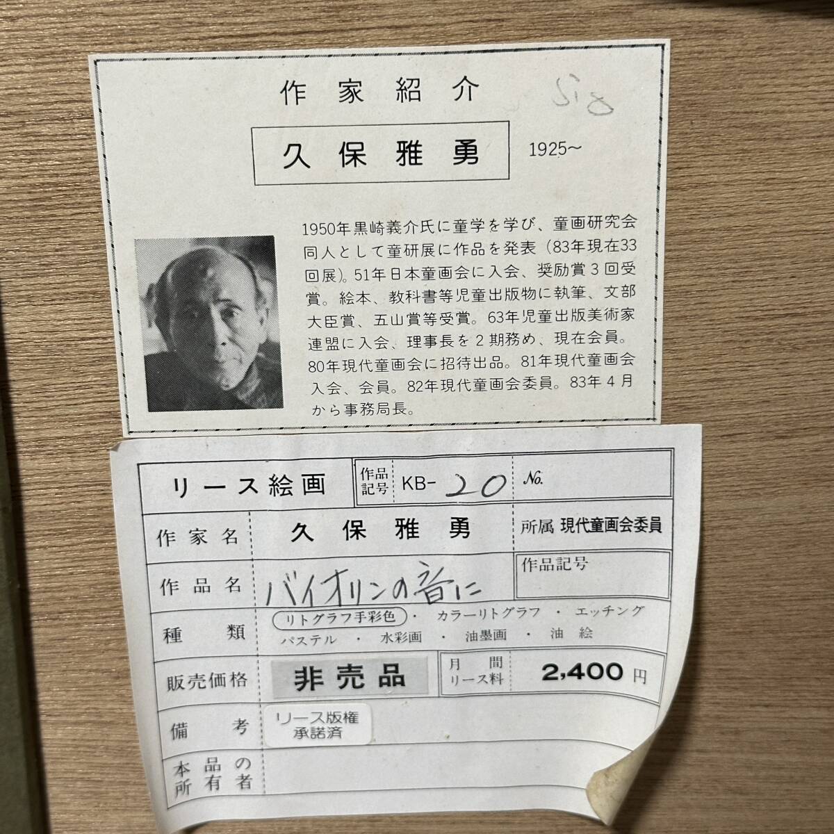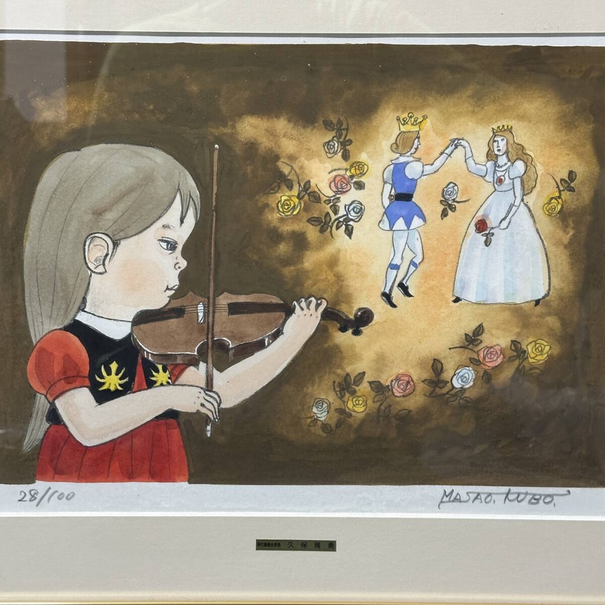 商品名:【真作】 久保 雅勇「バイオリンの音に」 リトグラフ 版画 手彩色 ED 8/100 額寸 53cm x 42cm 絵画 美術品 人物画 現代童画会