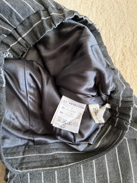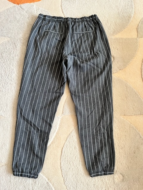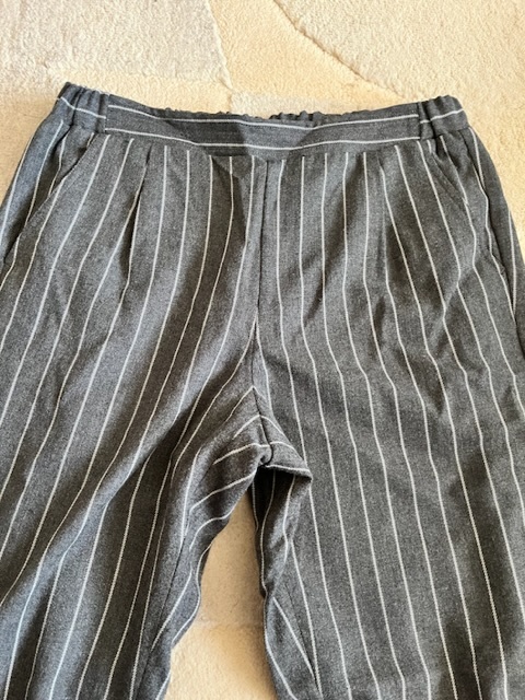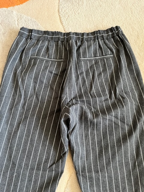 一度着用したのみの美品です。裾にもゴムが入っています。チャコールグレーに白のストライプです。