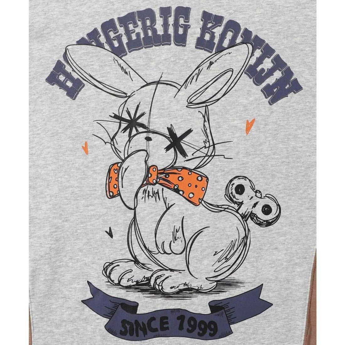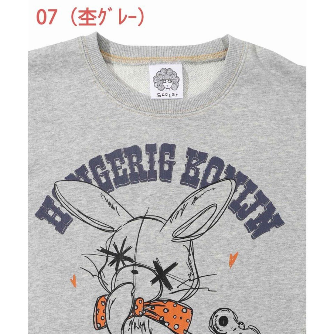スカラー ScoLar ネジ巻き うさぎ柄 切替 裏毛 ワンピース 新品 未使用 ウサギ 杢グレー
