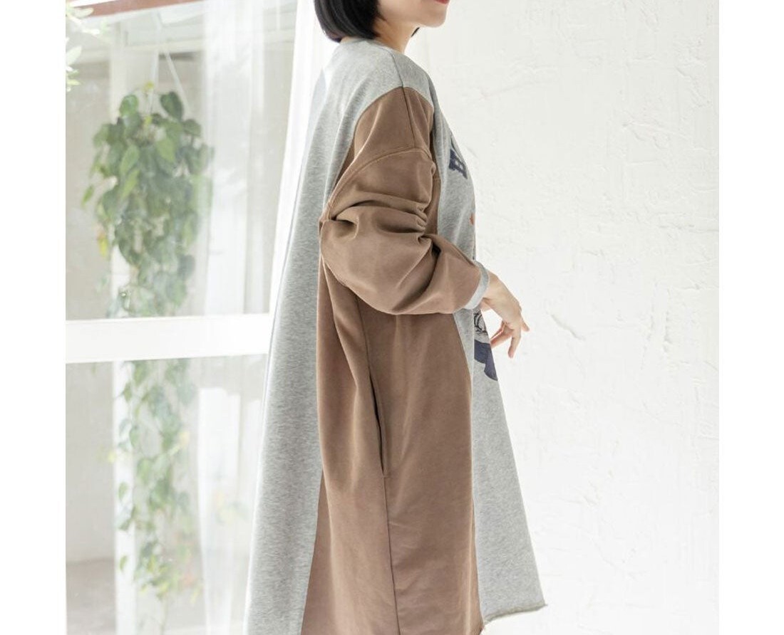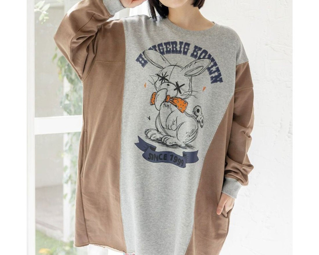 ・商品名:ネジ巻きうさぎ柄 切替裏毛ワンピース