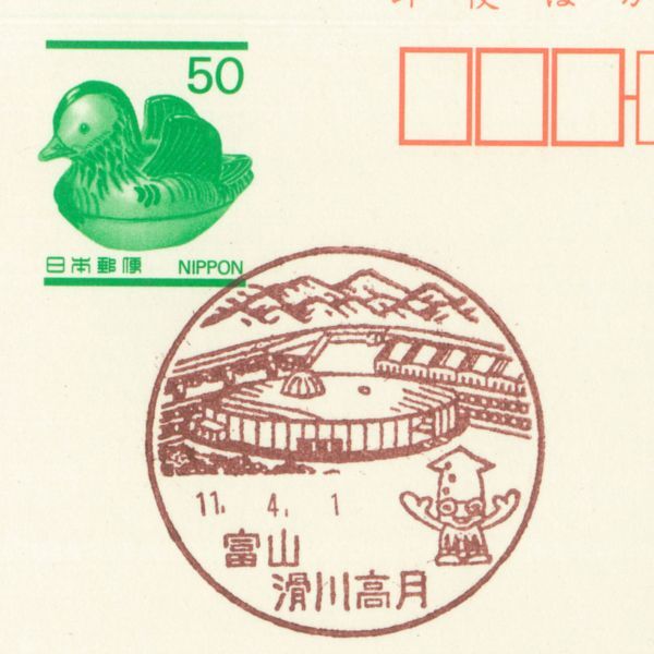 風景印☆初日☆富山・滑川高月・H11.4.1・旧印