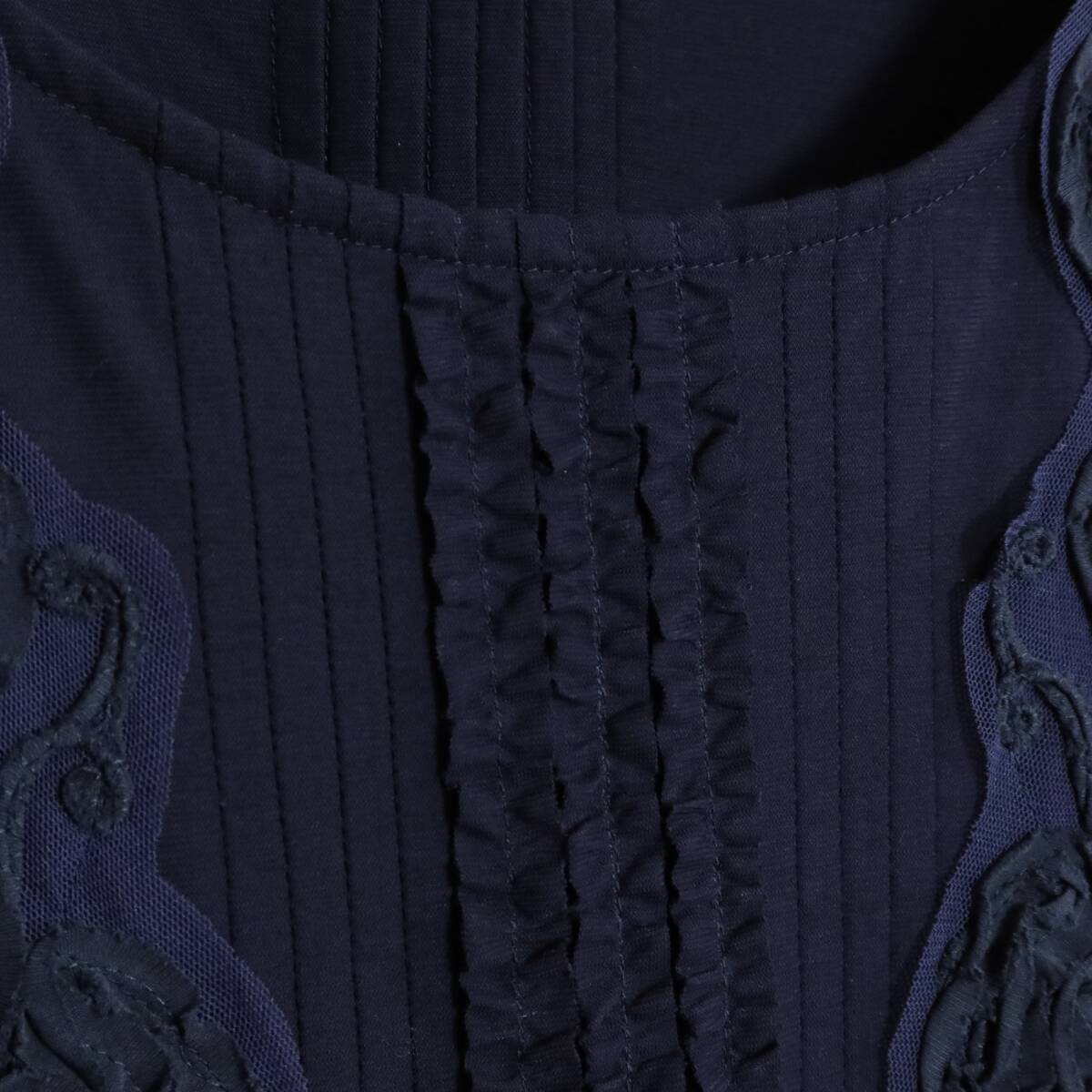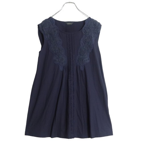 | 商品説明 | 【実寸約】バスト102着丈71(cm) 【サイズ表記】 なし。実寸をご参照くださいませ。 【素材】 綿100% 【状態】普通の使用感のあるお品物 【デザイン】濃紺系 ノースリーブカットソーです。 薄手/無地・フリル&お花のテープ飾り |