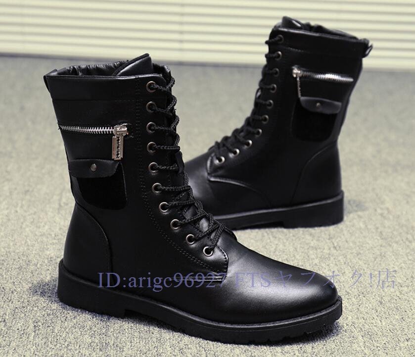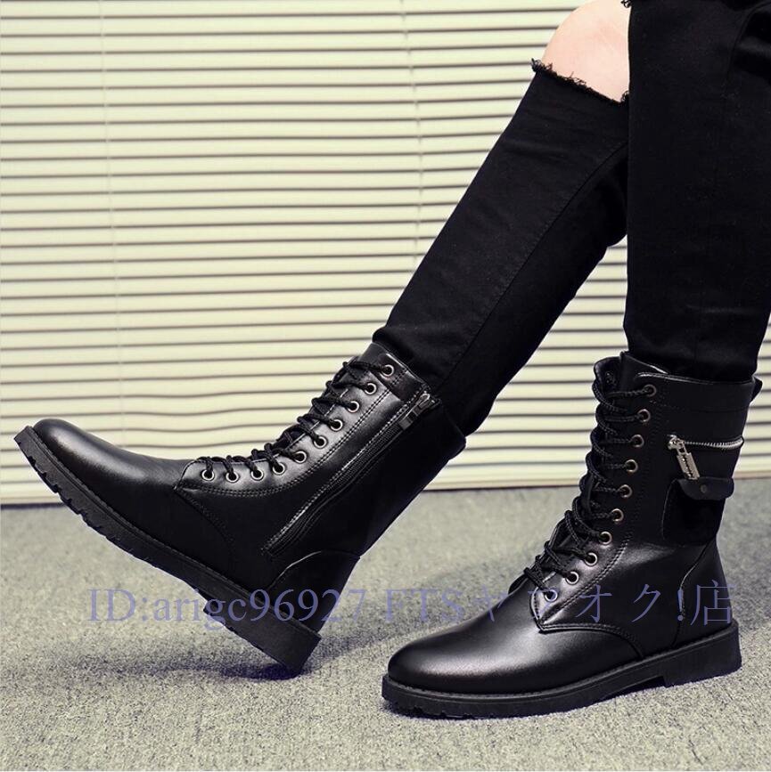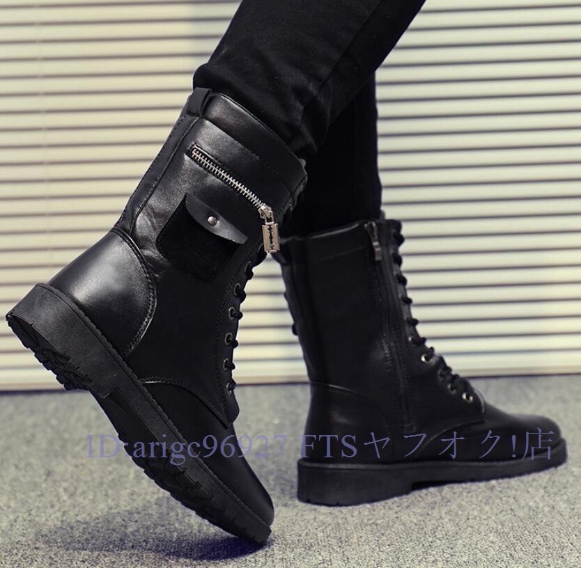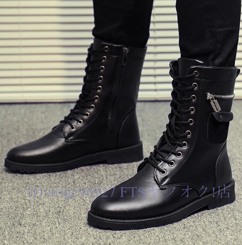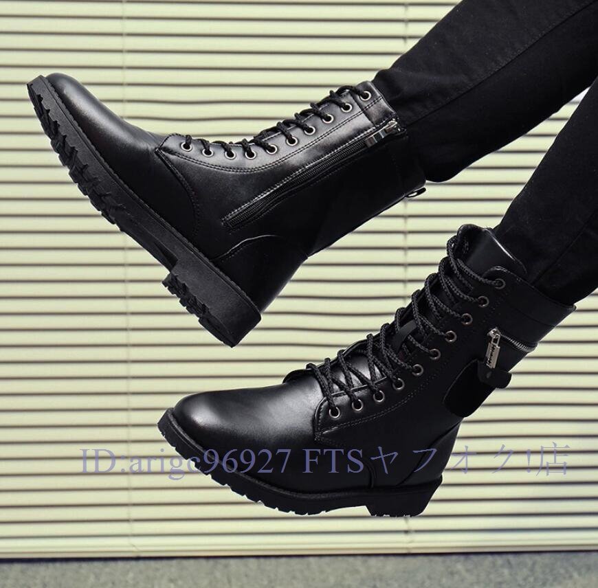 ☆新品メンズ マーティンブーツ エンジニアブーツレザーブーツサイドジッパー ワークブーツ ライダース バイク用靴ハイカットブーツ
