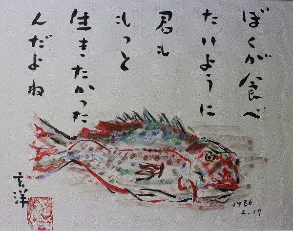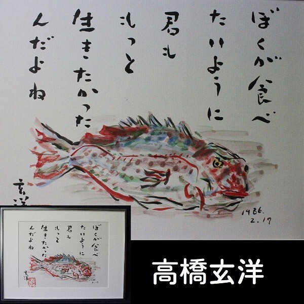 【真作】 高橋玄洋 「鯛 ぼくが食べたいように~」 書/水彩画 画賛 脚本家 劇作家 希少な直筆作品 D812