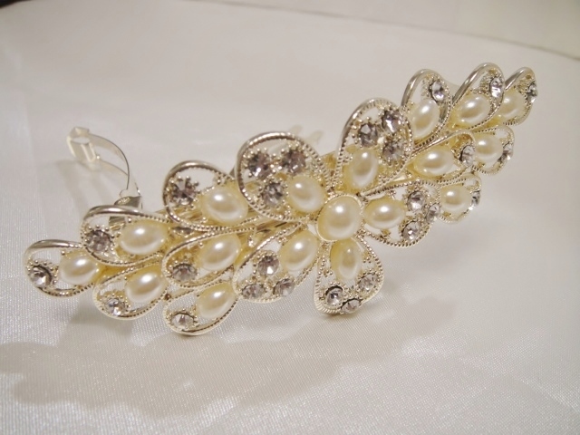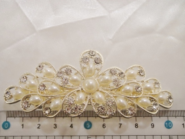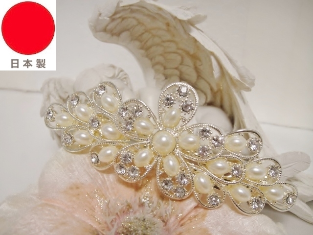 ♪ 新品 バレッタ 日本製『高品質/超ロングサイズ/特大フラワー/花/スワロフスキー&パール』♪