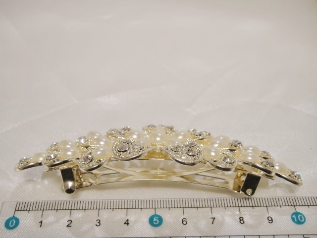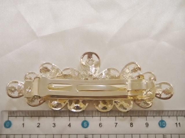 バレッタ本体、クリップ等にメッキ加工が施されておりますが経年劣化による色の変色が生じる場合がございます。