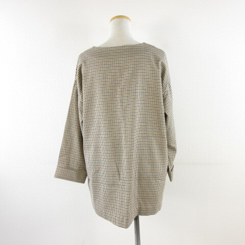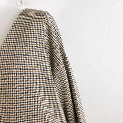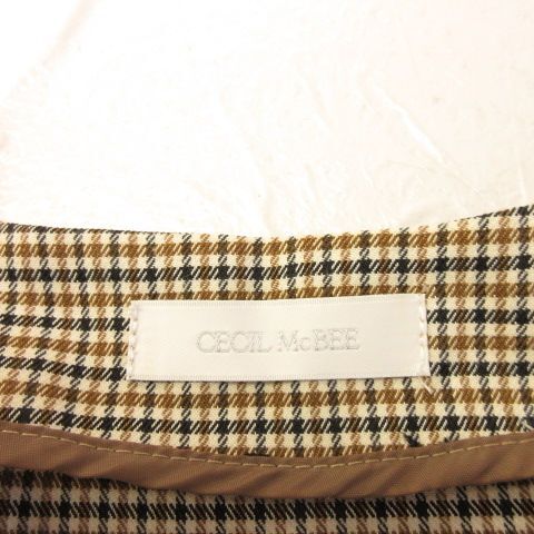 セシルマクビー CECIL McBEE ノーカラージャケット 長袖 チェック ストレッチ 茶 M *A177 レディース