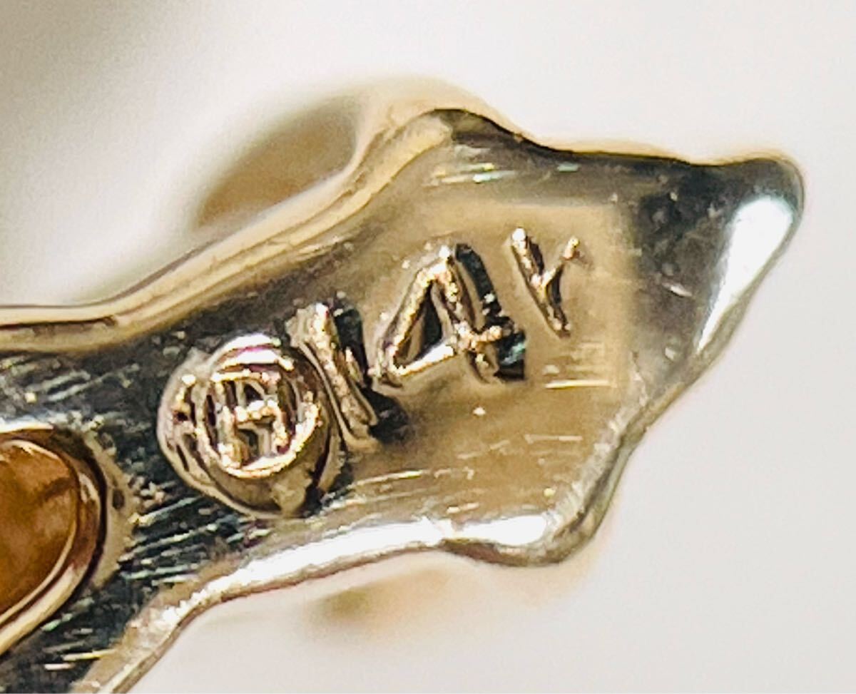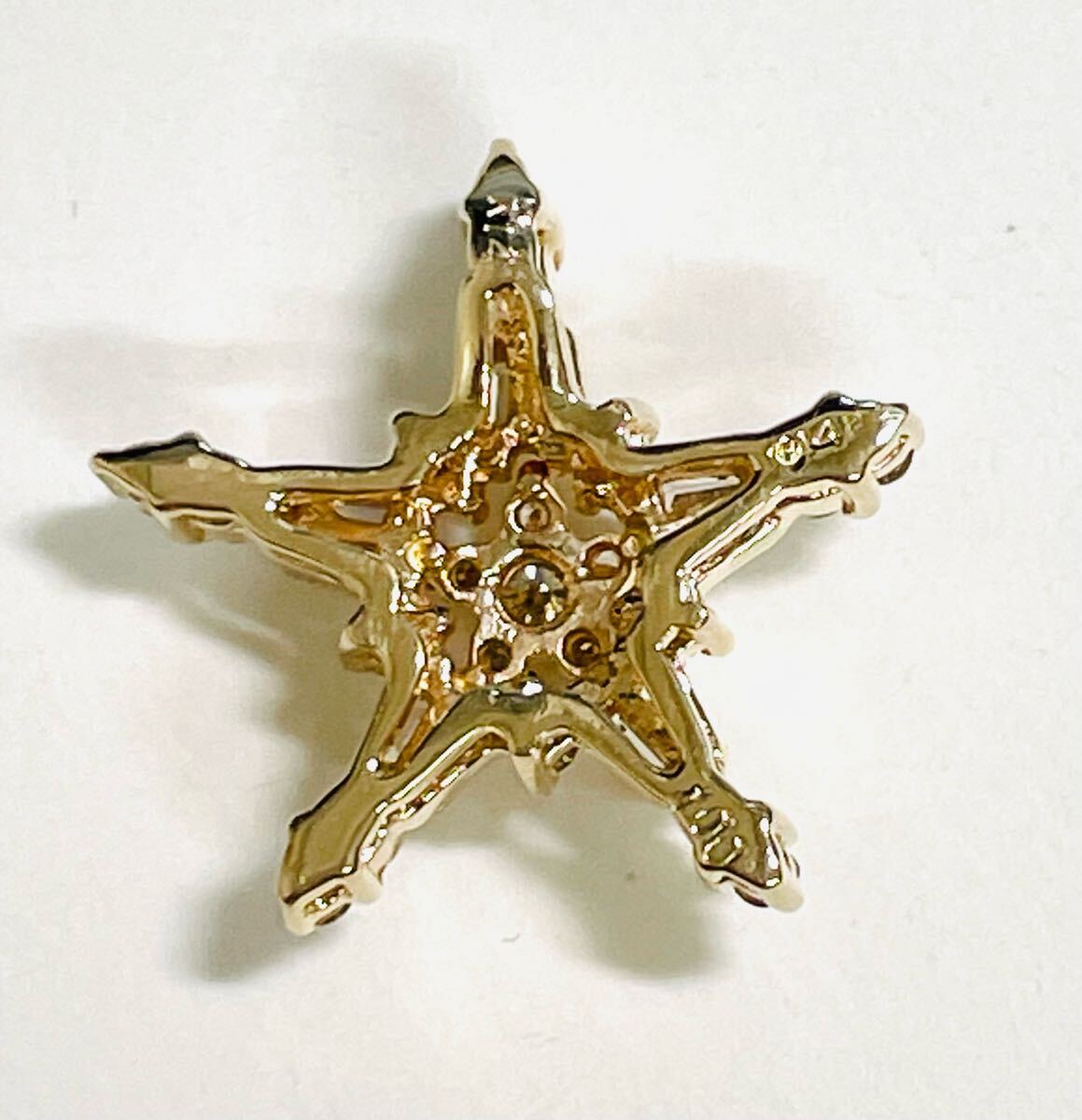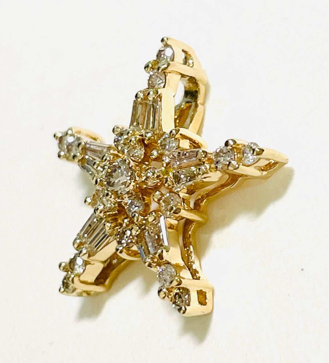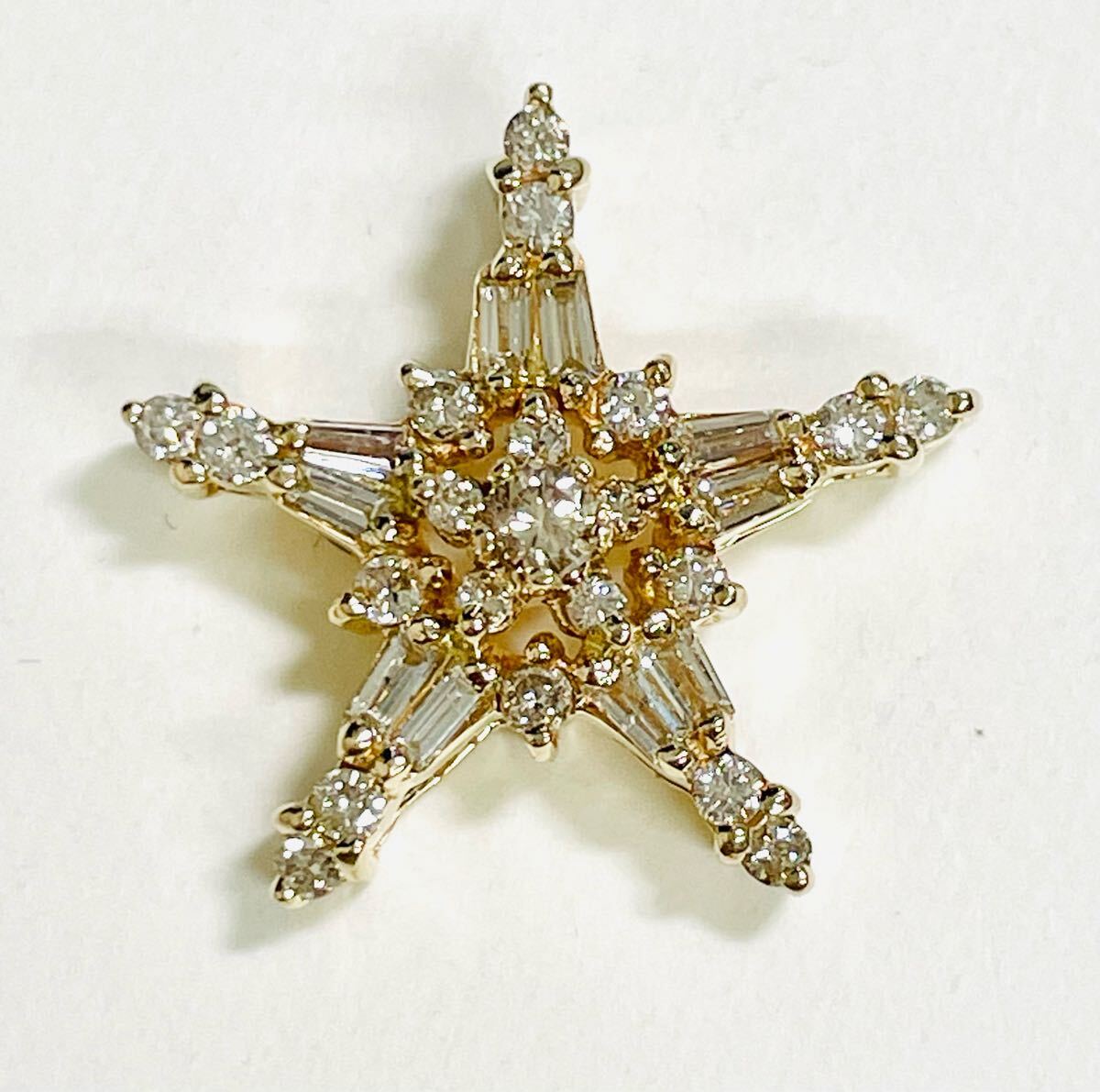 こちらは、K14台にテーパーカットダイヤ10石&メレーダイヤ21石付き星型ペンダントです。
