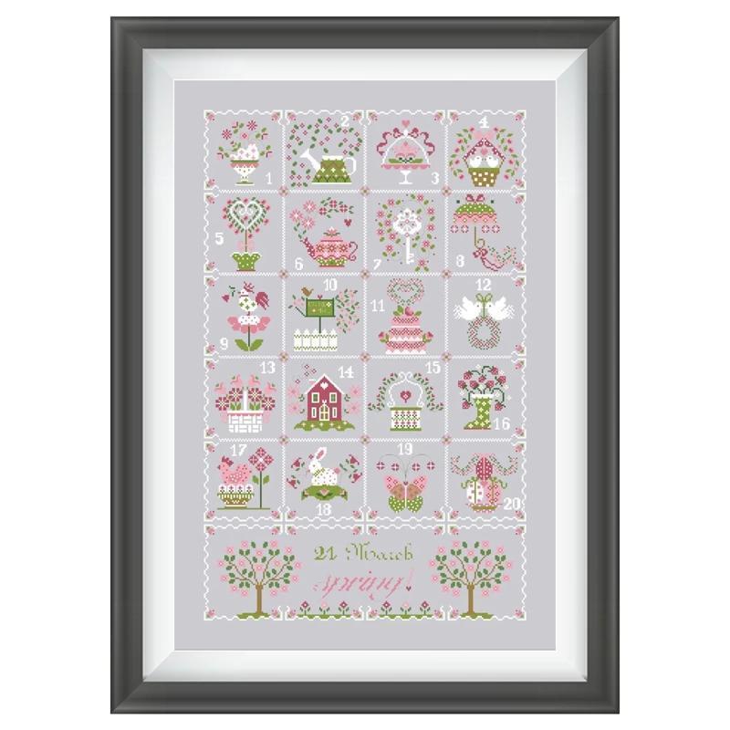 【スプリングカレンダー/ライトグレー14ct】クロスステッチキット