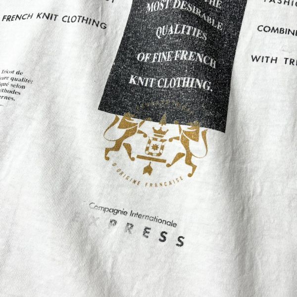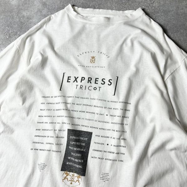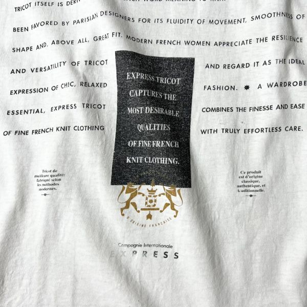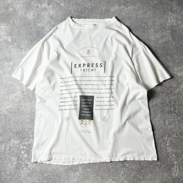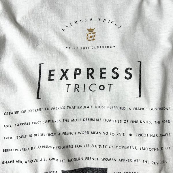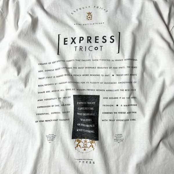 フロントにはEXPRESS TRICOTのロゴやブランドの特徴を記したプリントが入ります。
