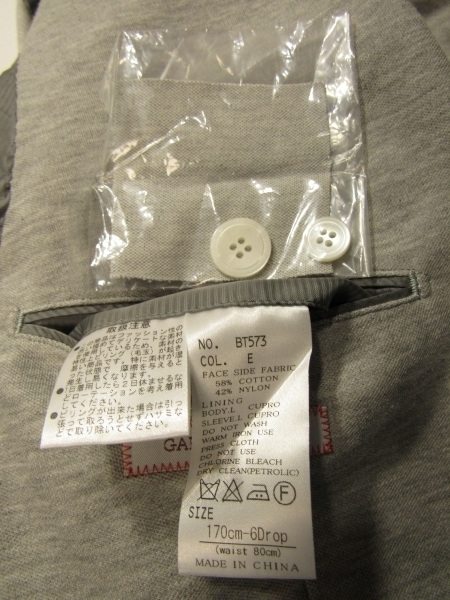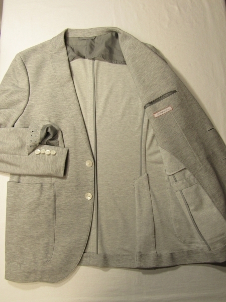 | スーツカンパニーで展開されていたブランド「GARMENT W・D」の、着心地も楽で、なにかと便利なジャージー素材ジャケットです。 薄手のジャージー生地で、春夏物だと思います。 胴裏地は背中の極上部のみで大見返し、肩パッドなしの軽快な仕立てとなっております。 メンズ・ジャージー・テーラードジャケット/春夏 シングル2つボタン/サイドベンツ/裏地-胴裏地は背中の極上部のみあり・袖裏地あり/大見返し/肩パッドなし/袖口本切羽4つボタン/腰パッチポケット |
