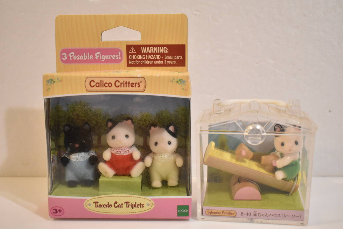 シルバニアファミリー チャコールネコの赤ちゃんセット/チャコールネコのみつごちゃん/赤ちゃんハウス シーソー/チャコールネコファミリー