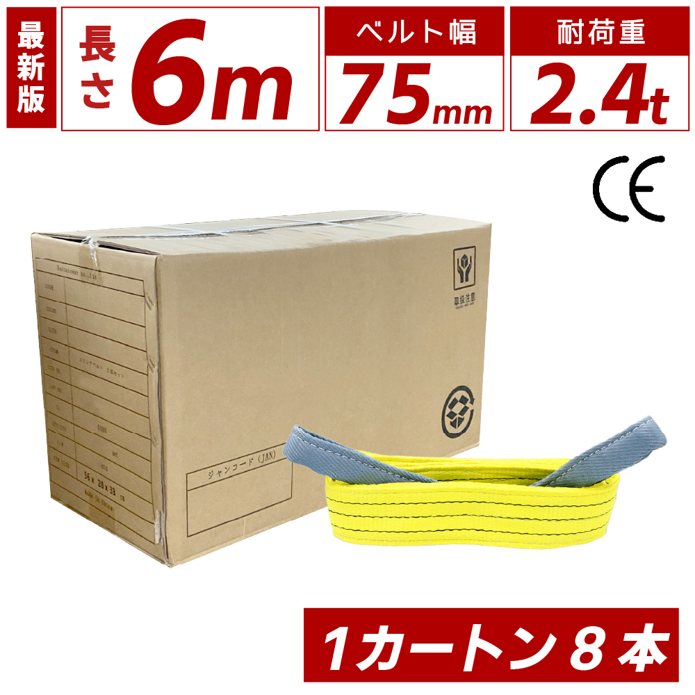 ・日本国内公的機関試験済み、国際品質機構ISO9001:2008認証工場で生産させた国際基準CE、TVU、GS規格品 ・最大使用荷重(kg):2400(ストレート吊の場合) ・全長(m):6 ・ベルト幅(mm):75 ・両端アイ形 ・材質:ポリエステル原糸100% ・安全係数:6 ・PL保険(生産物賠償責任保険)加入商品 ・生産国:中国 ●保証期間:商品購入から半年間 ※使用中の摩耗による損傷は保証対象外となります。 ・鋼材:メッキ・塗装などの表面加工鋼材・鋼管・鋼板などの運搬。 ・機械:自動車および自動車部品・精密機械の運搬。 |