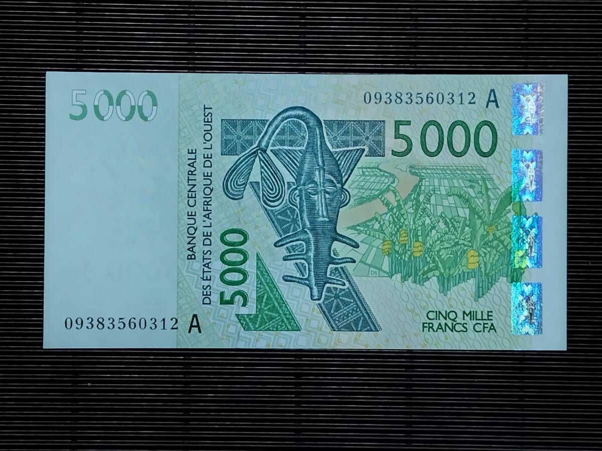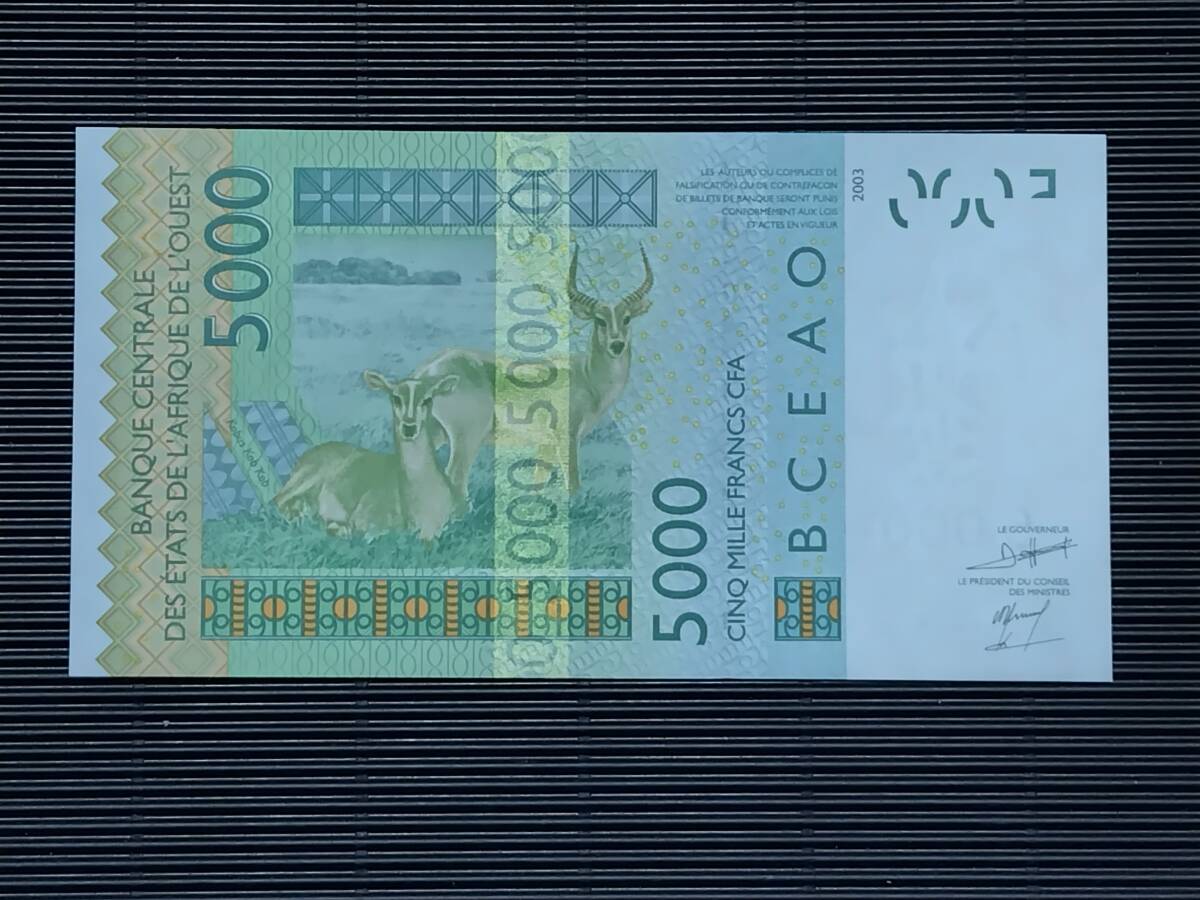 コートジボワール(西アフリカ通貨同盟のA) 5000 Francs札   コレクション向きのピン札  2009年 甘い未使用のプラス アンテロープ バナナ p-117Ah  #09383560312 A