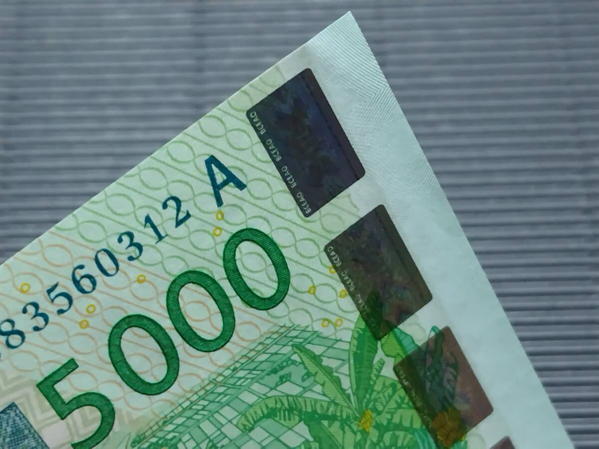 ●ポリマー札ではない外国紙幣(紙製)の新札には、偽造防止技術の端に爪で押したような凹みがしばしば見られます。また、四つ角部分に透かしが入っているケースにも凹凸が見られます。日本の紙幣には見られない、このような状態であっても世界のコレクター間では「未使用品」として取り扱われています。