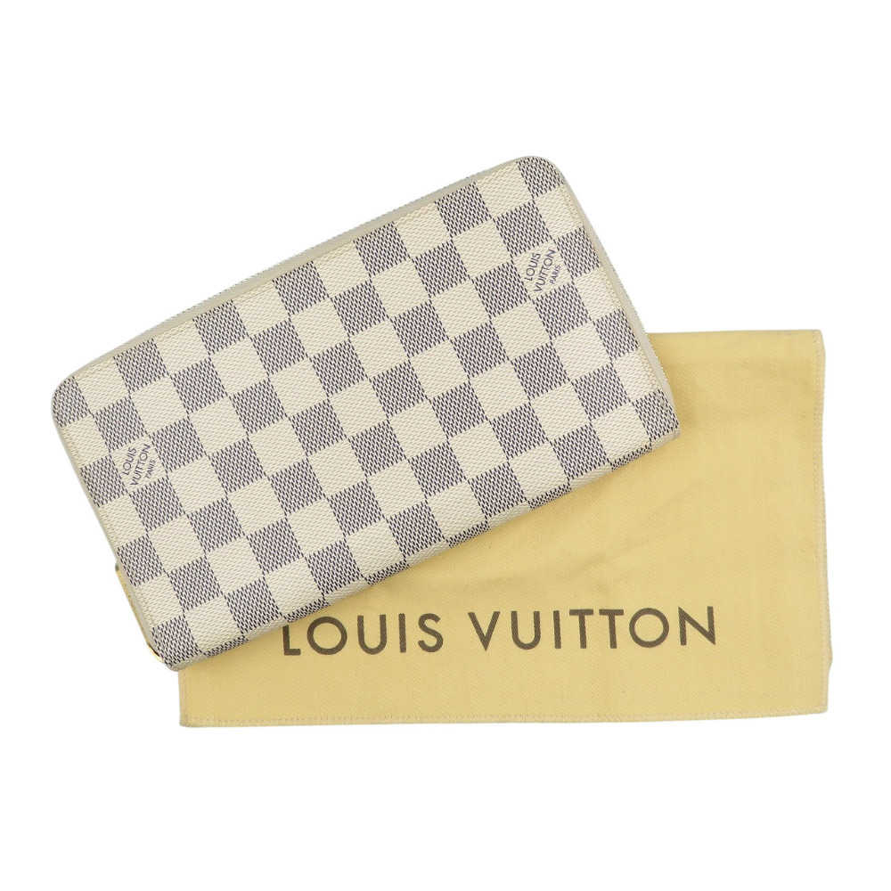 美品 ルイヴィトン ダミエアズール ジッピーオーガナイザー N60012 ゴールド金具 ホワイト ラウンドファスナー 長財布 1233 LOUIS VUITTON