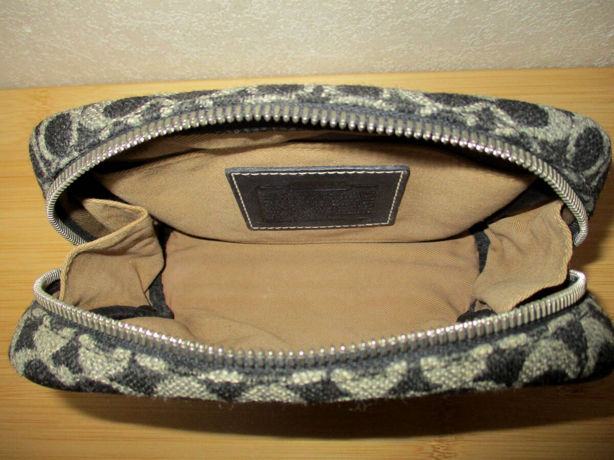 コーチ COACH ポーチ シグネチャーです。素材はウール系?×本革です。 色は黒×グレー系 です。色は画像でご判断ください。