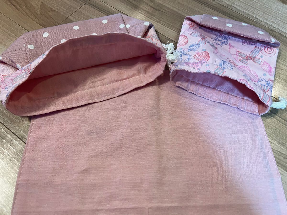 ピンクに貝殻*シェル柄のオックス生地で、お弁当袋3点セットを作りました。