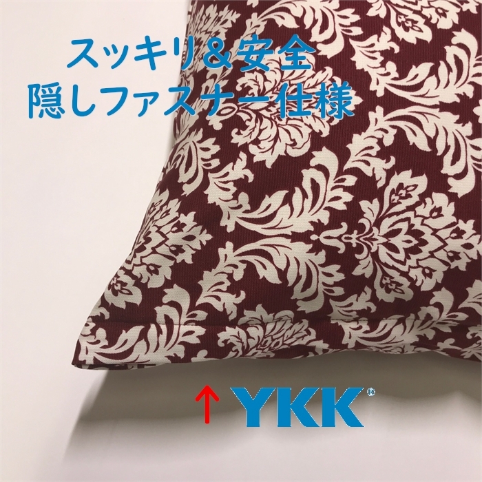 クッションカバー ダマスク ボルドー 赤 45×45cm 綿100%