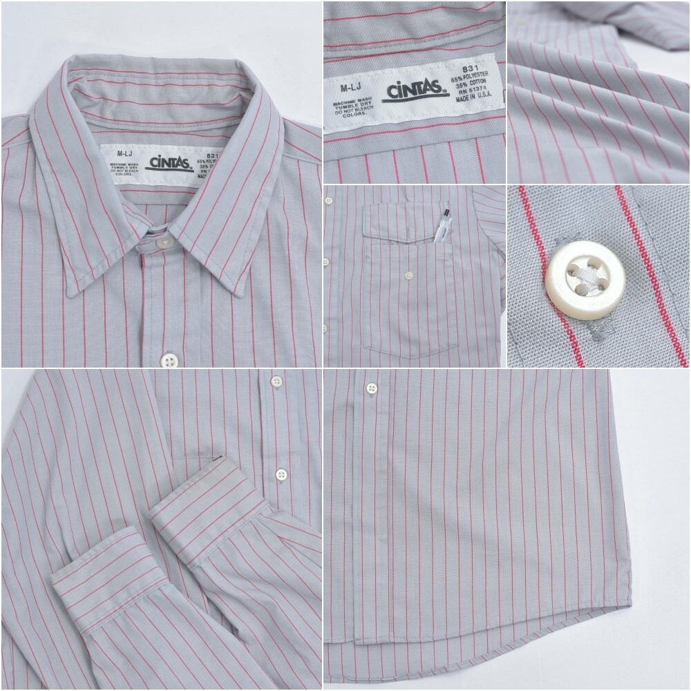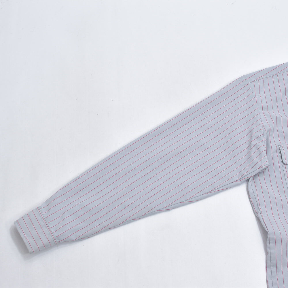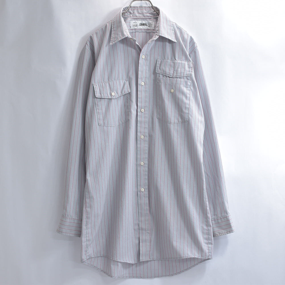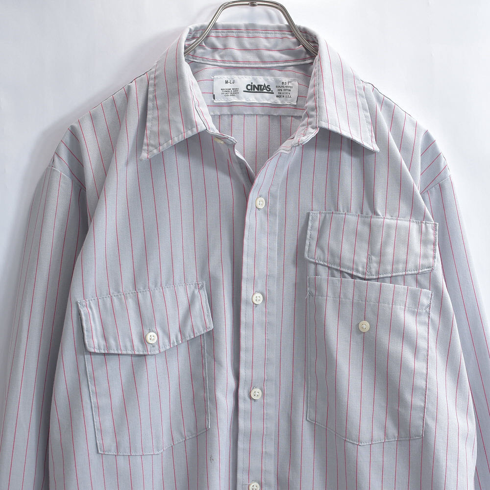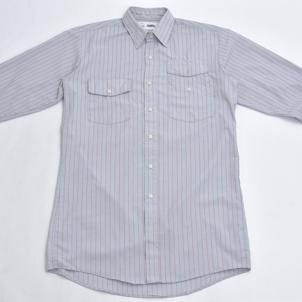 アメリカ製 CiNTAS カスタム 長袖 ストライプ ワークシャツ ヴィンテージ グレー レッド ビンテージ USA古着 メンズ XLサイズ相当