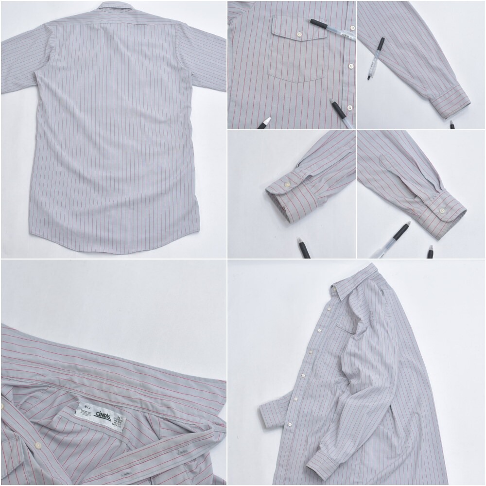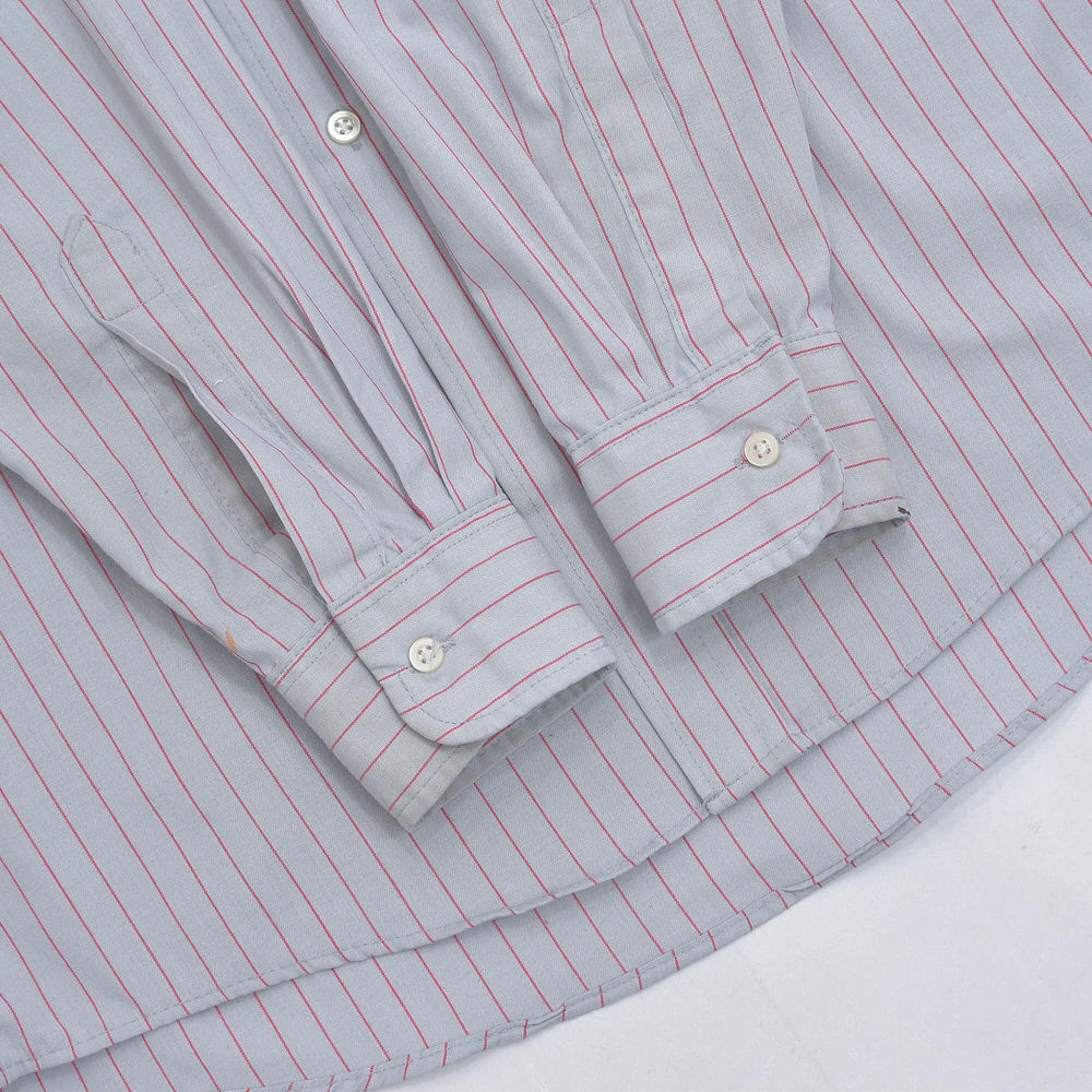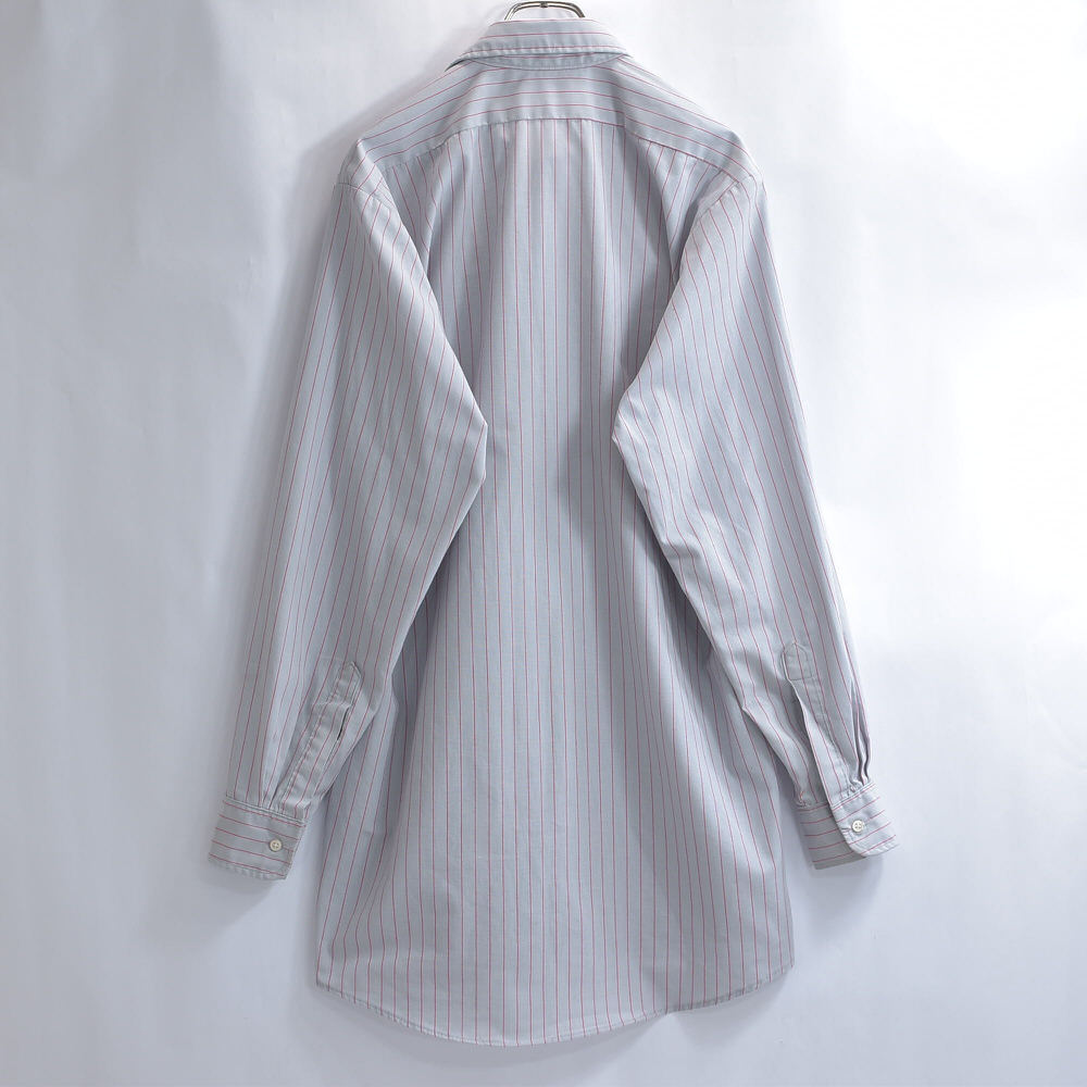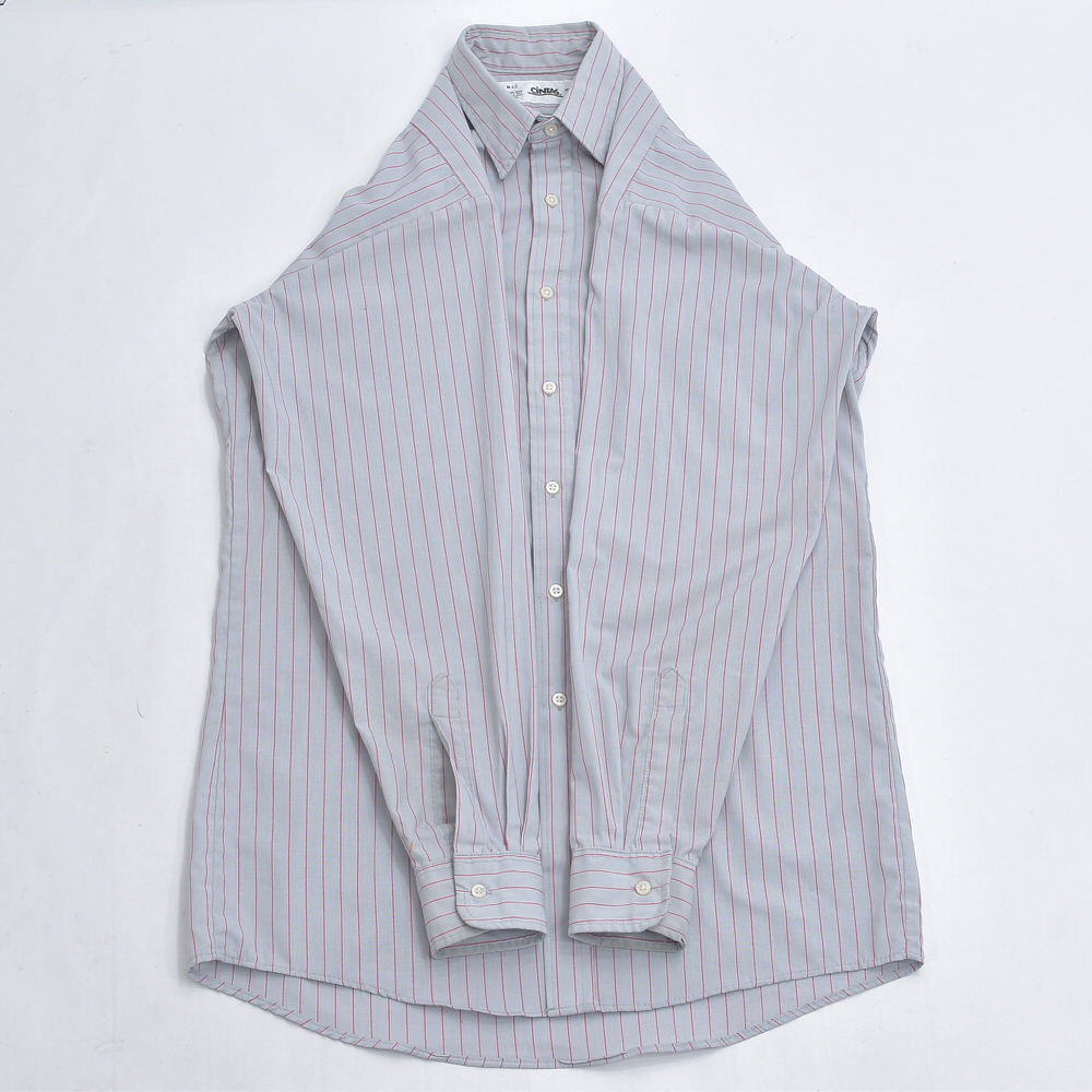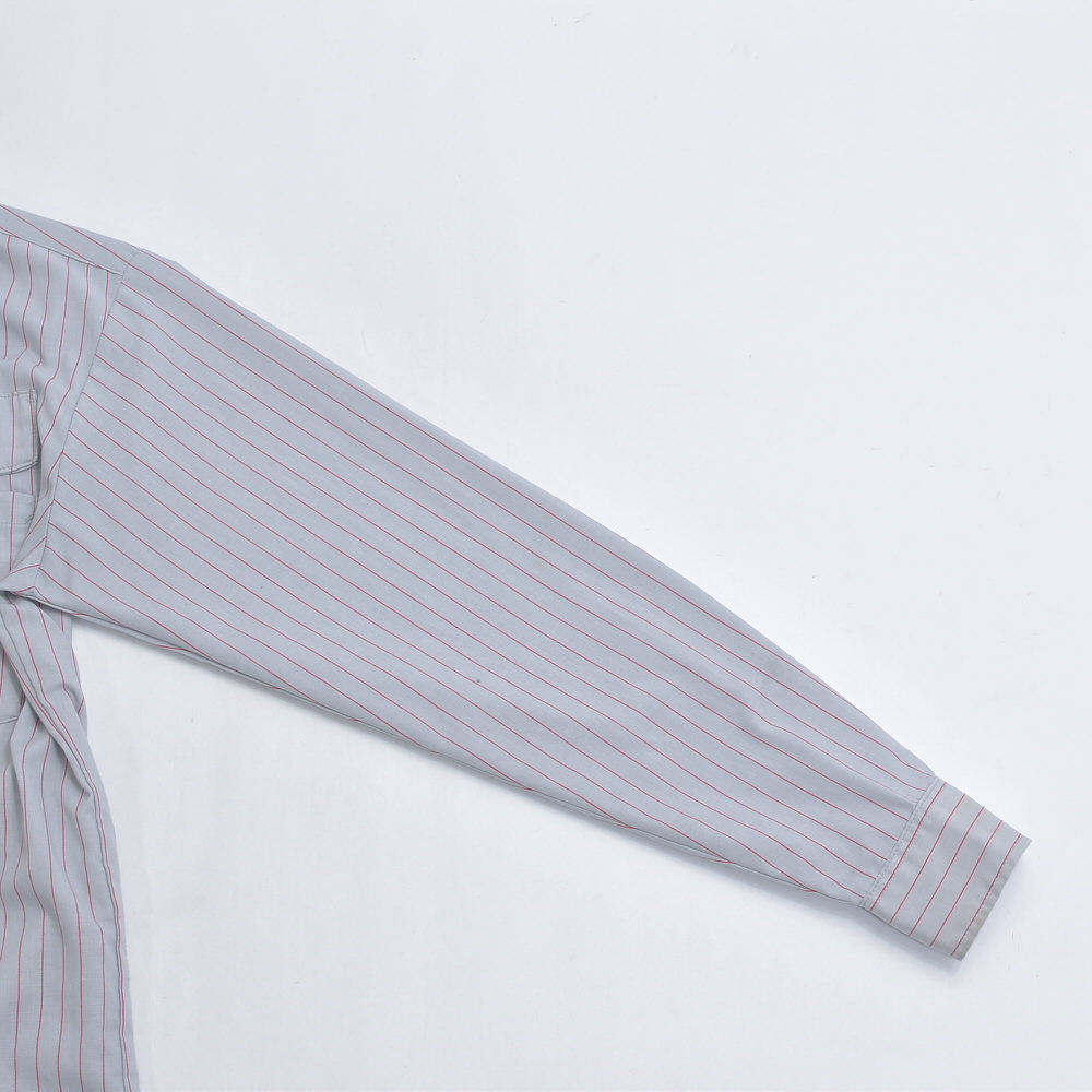 アメリカ製 CiNTAS カスタム 長袖 ストライプ ワークシャツ ヴィンテージ グレー レッド ビンテージ USA古着 メンズ XLサイズ相当