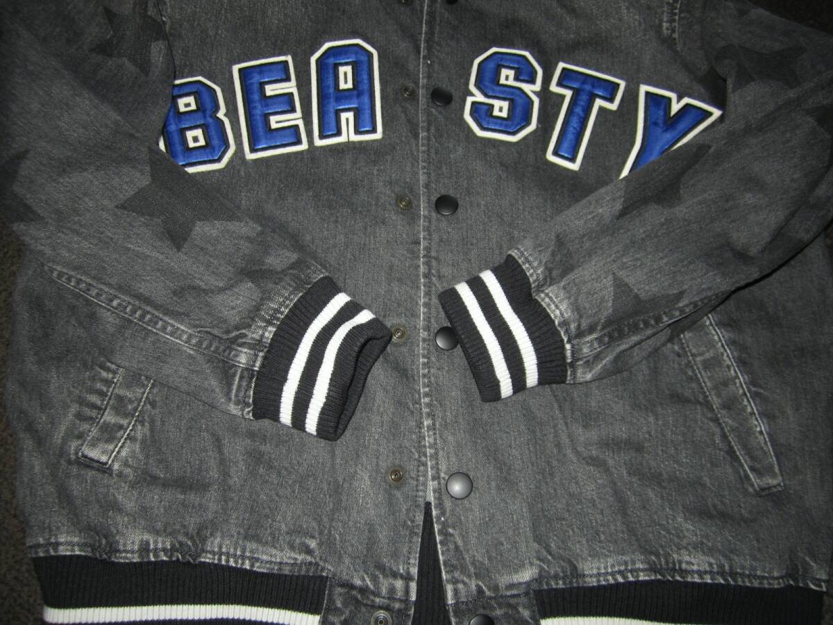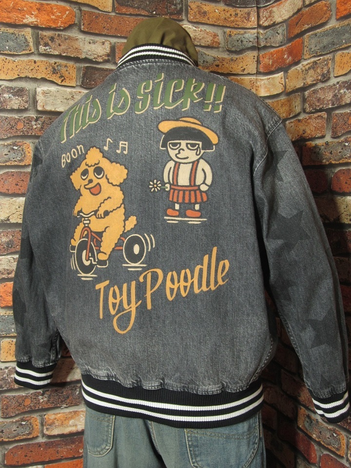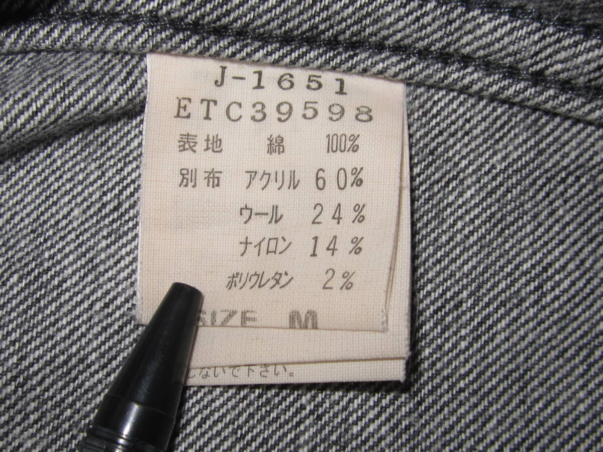 | RNA・レディース・デニムスタジャン 【サイズ】 レディースでサイズ表記は「M」になっていて身幅・肩幅が大きく横に広めな造りです。 ※実寸をご確認ください。 肩幅約49cm・身幅約57cm・ウエスト幅約45cm 袖丈約51cm・着丈約60cm (袖丈は袖先のリブの部分も含めて計測) (着丈は裾リブの部分のみ含めて計測) (ウエスト幅は腰のリブの付け根部分を計測) 【状態】 表地はコットン100%のデニムで、一枚生地ですので春や秋頃に適しているのではないでしょうか。 全体的に着用感はありますが破れや大きな汚れはありません。 色は色落ちしたブラックで、袖に星型のマークが入っています。 (スマホやPC環境により色は違いが出る事があります) 背中の裏側にペイント液が滲んでいますので予めご了承ください。 リブは若干毛羽立ちはありますが全体的に着用感少なく穴等もありません。 フロントはパチッと留めるホック式ボタンで全て付いています。 フロントの「BEASTY」の文字は元々から付いていたワッペンで、背中のイラストは私が描いたものになります。 | |