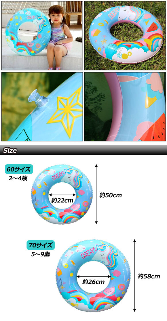 子ども用浮き輪 70サイズ PVC製 ユニコーン柄 AP-UJ0940-70