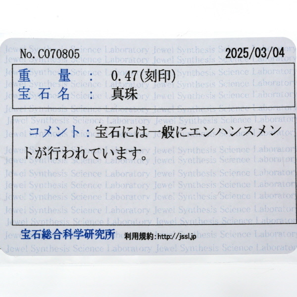 | 石目 | 真珠10.3mm ダイヤモンド0.47ct |