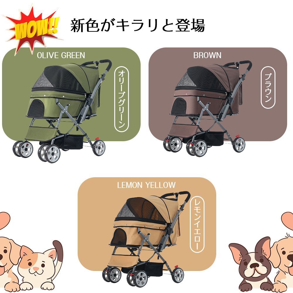 n おすすめポイント ◆対面式の設計で愛犬の顔を見ながら、散歩しましょう。 ◆足踏みストッパー付きで、休憩や坂道でカートを止める際も安心! ◆360度回転できる前輪に、直進固定レバーも付きます。 ◆飛び出し防止用リードや転倒防止用リストストラップ付き。 ◆高抵抗率と硬度を備えた軽量のアルミニウム合金製で、変形しにくく、耐久性が非常に優れています。 ◆ワンタッチ式で、簡単に折りたたむことができて大変便利です。 ◆芝生や砂のある道やデコボコ道など様々な路面に対応できます。 ◆高品質の600Dオックスフォード記事で、遮光性に優れ、UVカット効果があります。 ◆通気性と可視性に優れ、虫が入りにくいメッシュウィンドウズ。 ◆大容量バスケット付き、たっぷり収納できます。