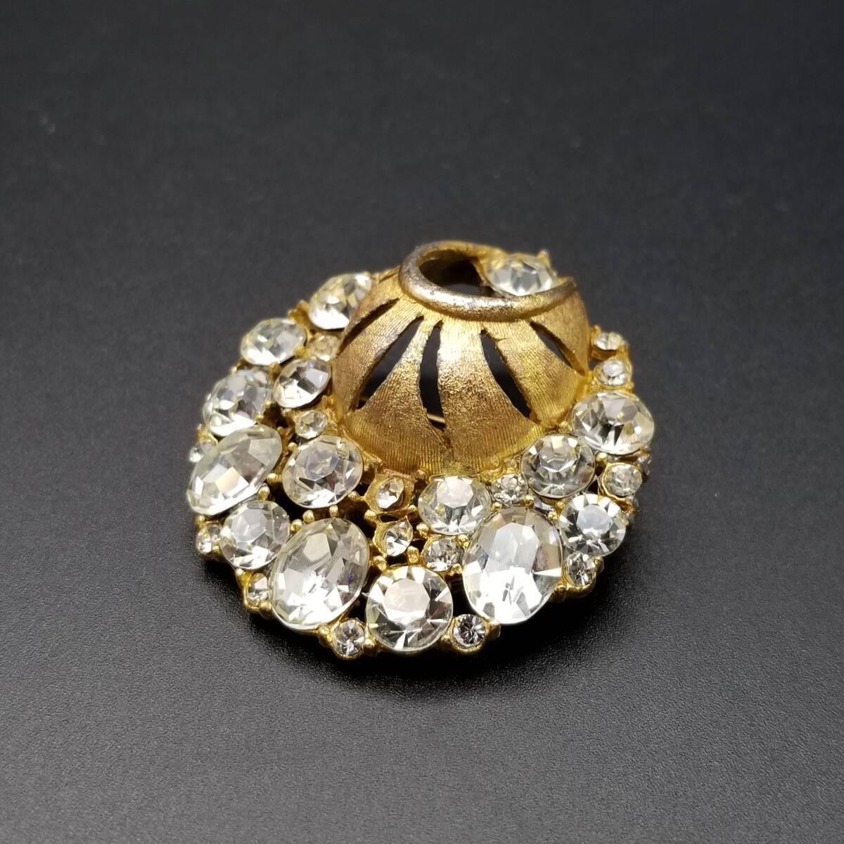ネックチョーカー モチーフ クリアラインストーン 煌めき ヴィンテージ ブローチ ラウンド シルエット ゴールドトーン 立体感 Y17-Y