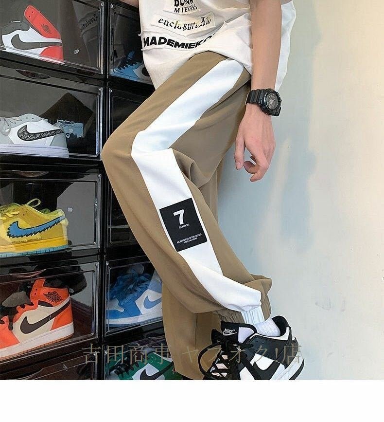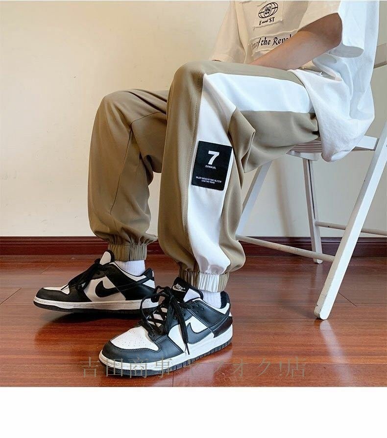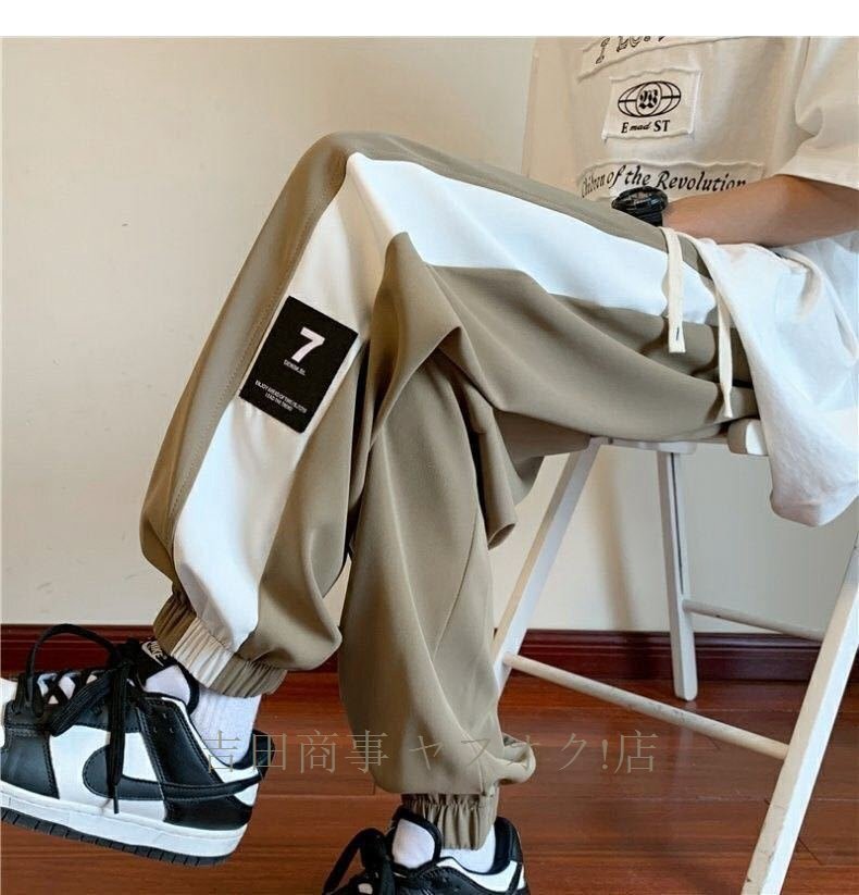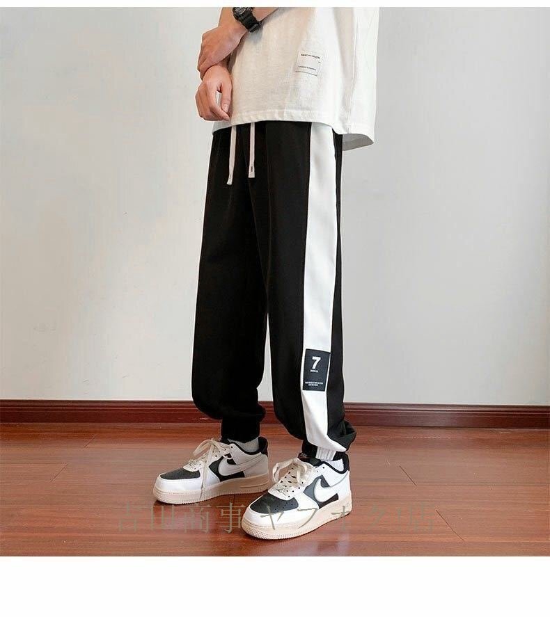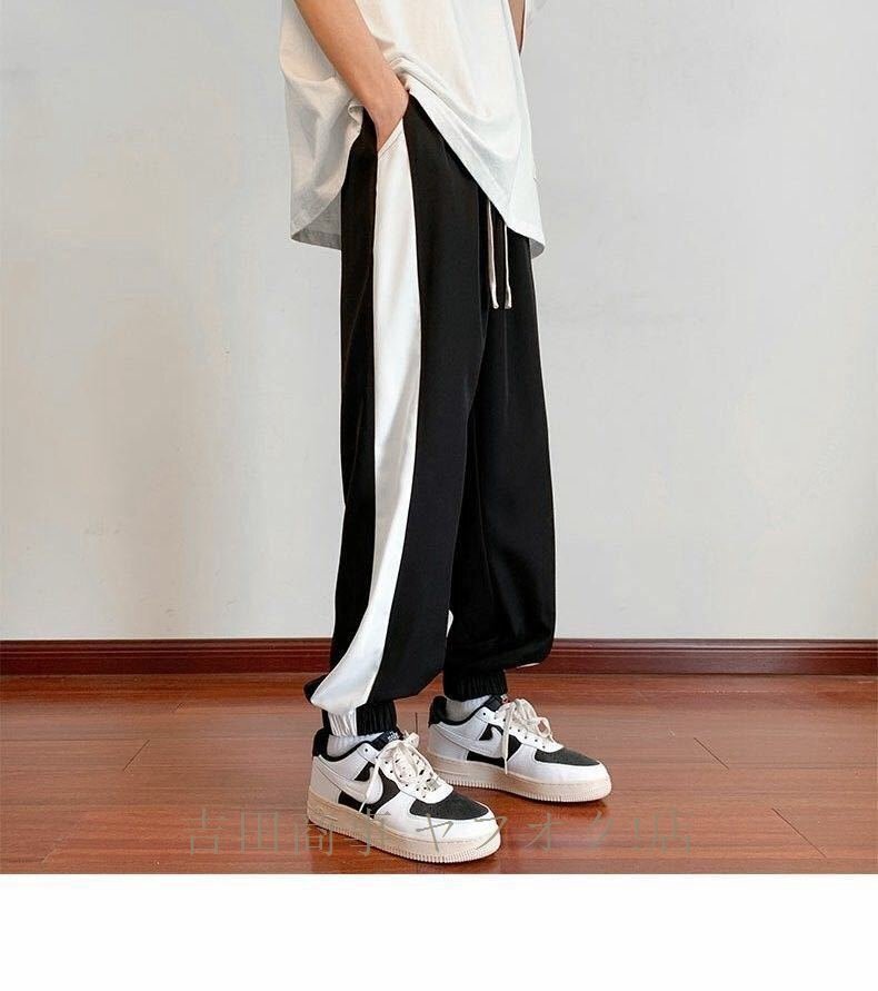 A8276☆新品メンズ パンツ サイドラインパンツ ウエストゴム 夏秋 九分丈 薄手 ゆったり カジュアル スポーツウエア