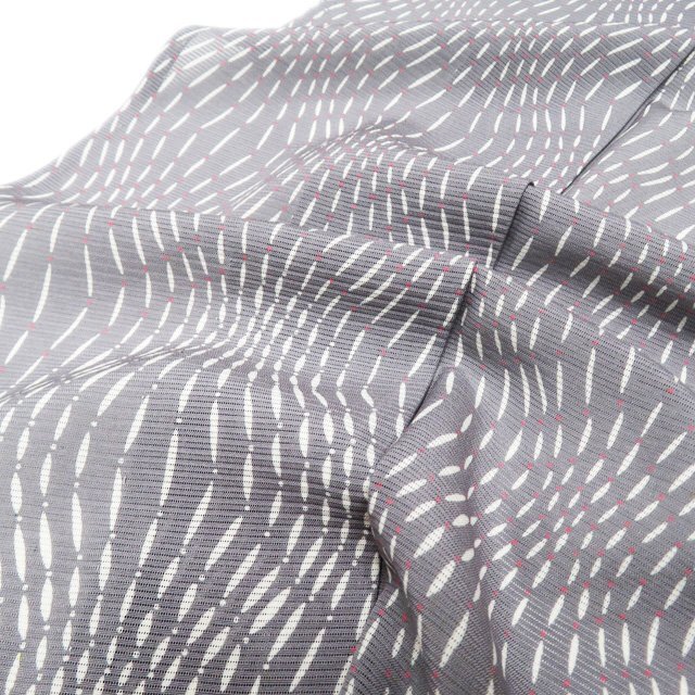 丈158cm(+0) 裄65.5cm(+4) 袖丈46cm(+3) 前幅25cm 後幅30.5cm ※サイズのお直し、承ります。 (身丈のみ、身幅のみのお直しは承っておりません) ※身丈は肩から測っております。 ※()内はおおよそのお直しいただける長さです。胴裏の長さ等によって()内の長さ通りお直しできない場合があります。 単位:cm 素材 正絹 商品ランク B ●着用時期 7月、8月(+-2週間) ●着用シーン 観劇、ご友人との食事、お買い物など ●お色 鼠色 多色 内側に点々汚れがございますが、表側は綺麗でまだまだご着用いただけるお品物です。 居敷当ての付いていないお品物です。 涼やかな和のお洒落をお楽しみくださいませ。 写真に写っている着物のみの販売で、帯等の付属品はついておりません。 一部商品は実店舗・他サイトでも並行して販売しておりますので売り切れの際はご了承ください。 その他多数販売中 n | ||||||