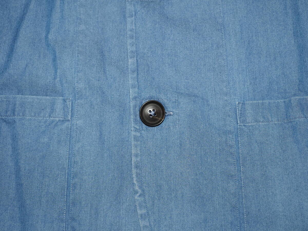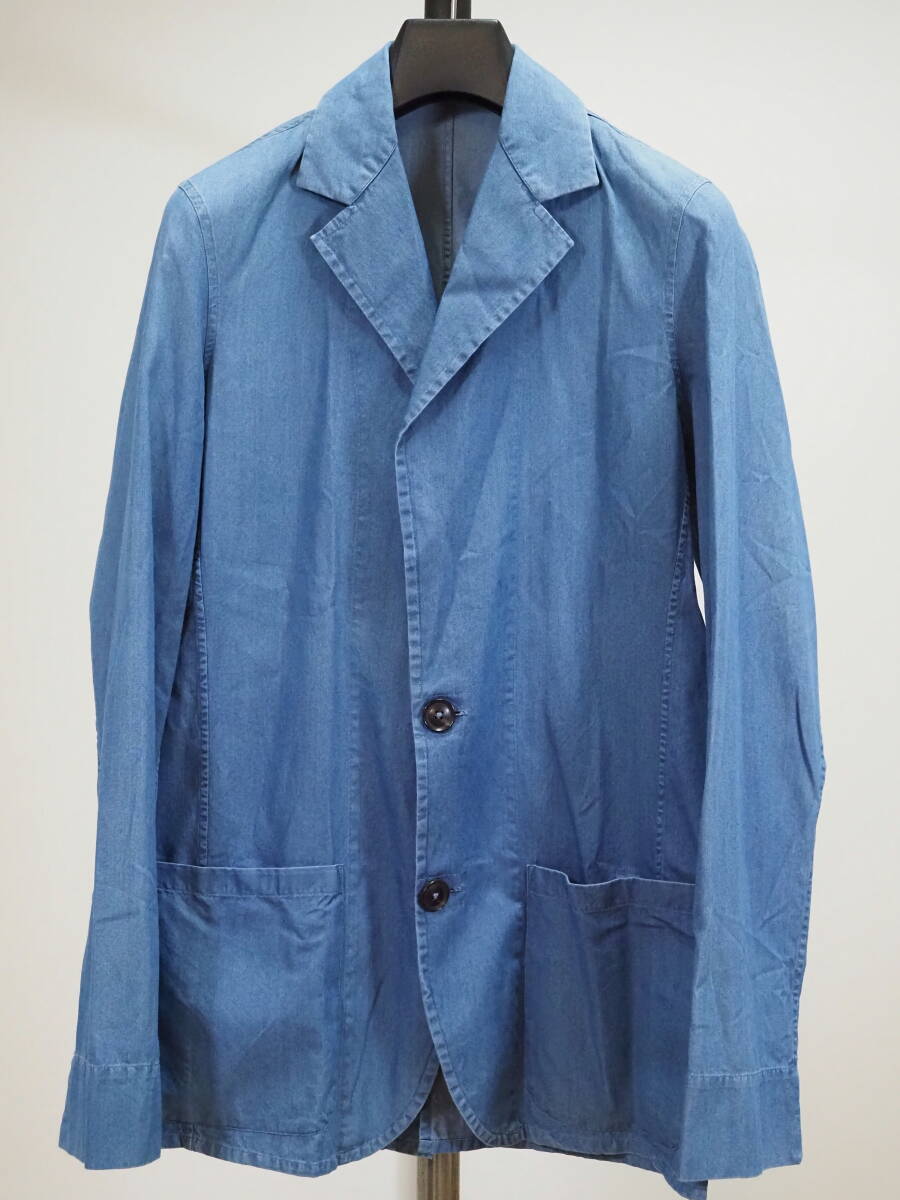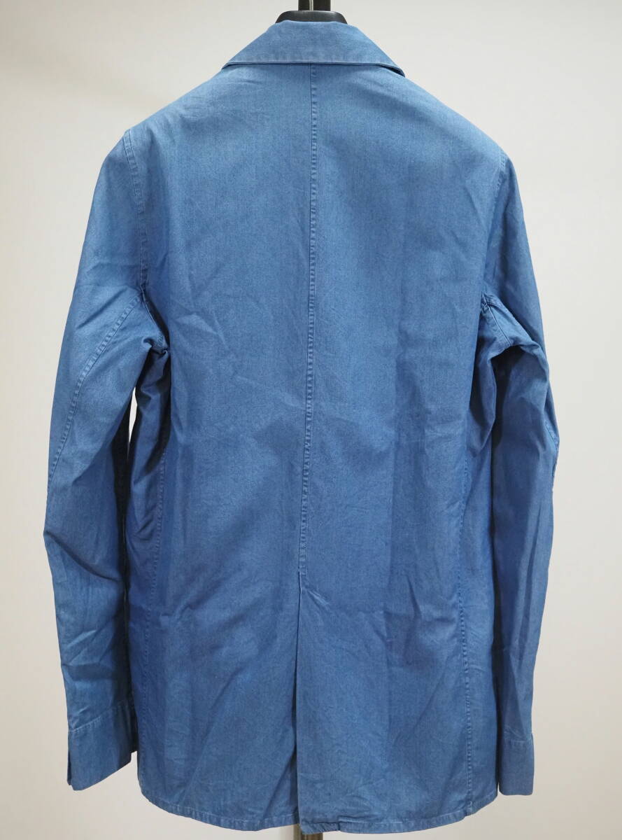 ウォッシュ加工のされた薄手のデニム素材を用いた一枚仕立てのアンコンジャケットです。