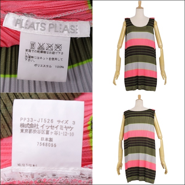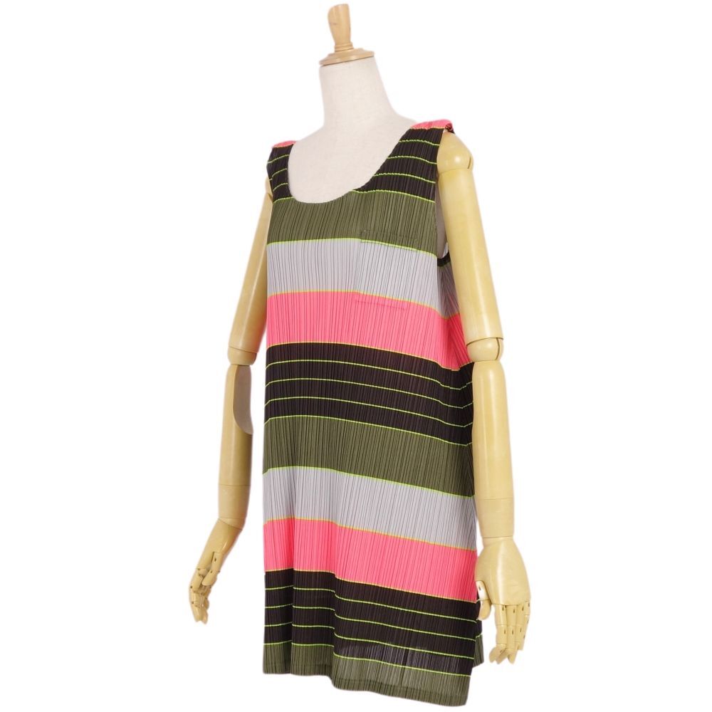 | 美品 プリーツプリーズ イッセイミヤケ PLEATS PLEASE ワンピース チュニック ノースリーブ 総柄 プリーツ トップス 3 |