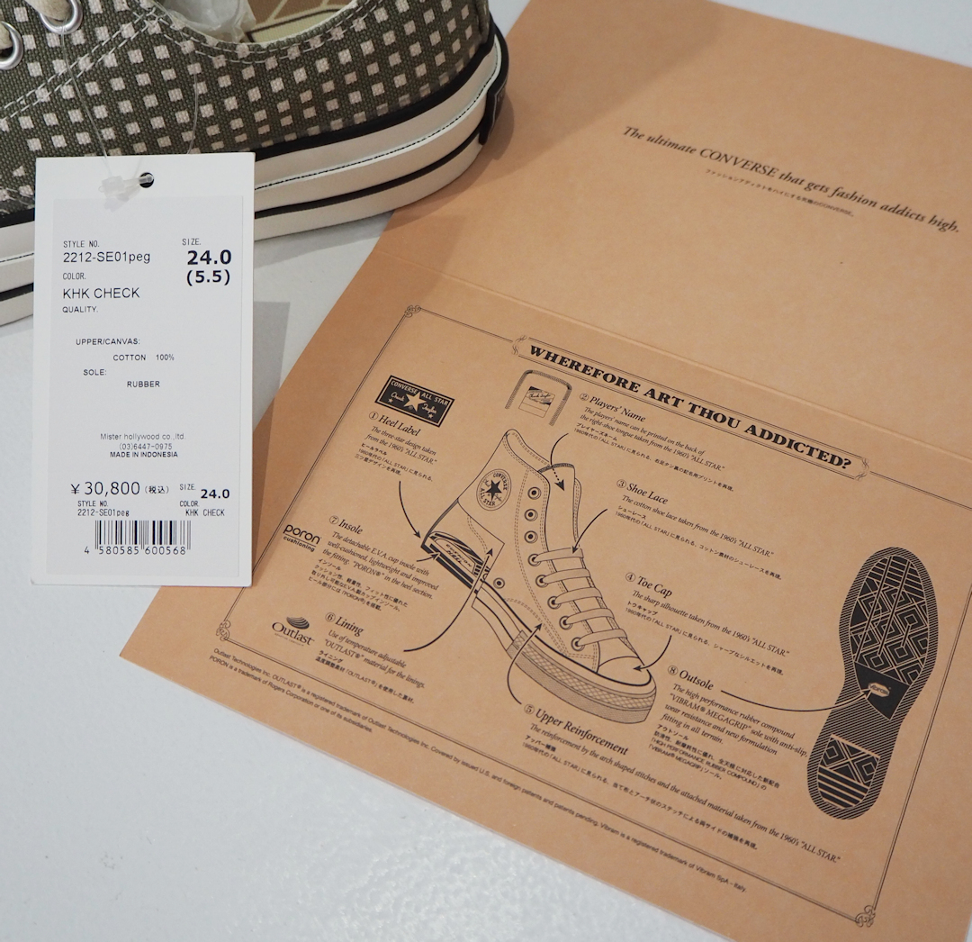 2021-2022awアイテムで、アンダーカバー1996年の名作素材を使用し、コンバース オールスター チャックテイラー モデル、2ブランドのタグ、二色のシューレース、クッション性に優れたEVA製のインソール、vibramソール、三ツ星ラベルなど、細部まで凝ったデザインです。