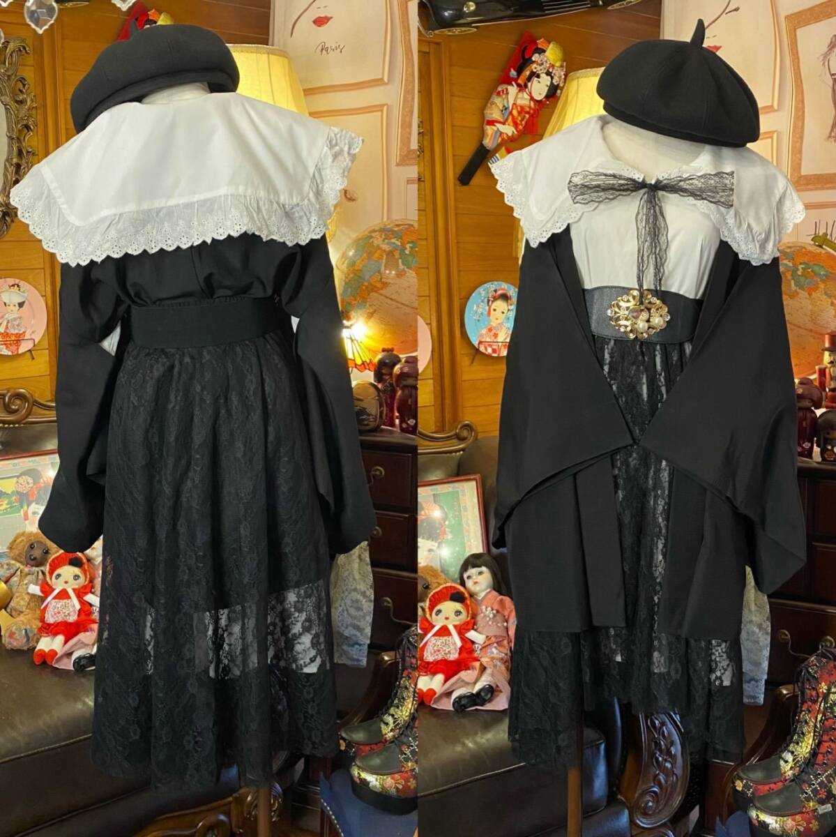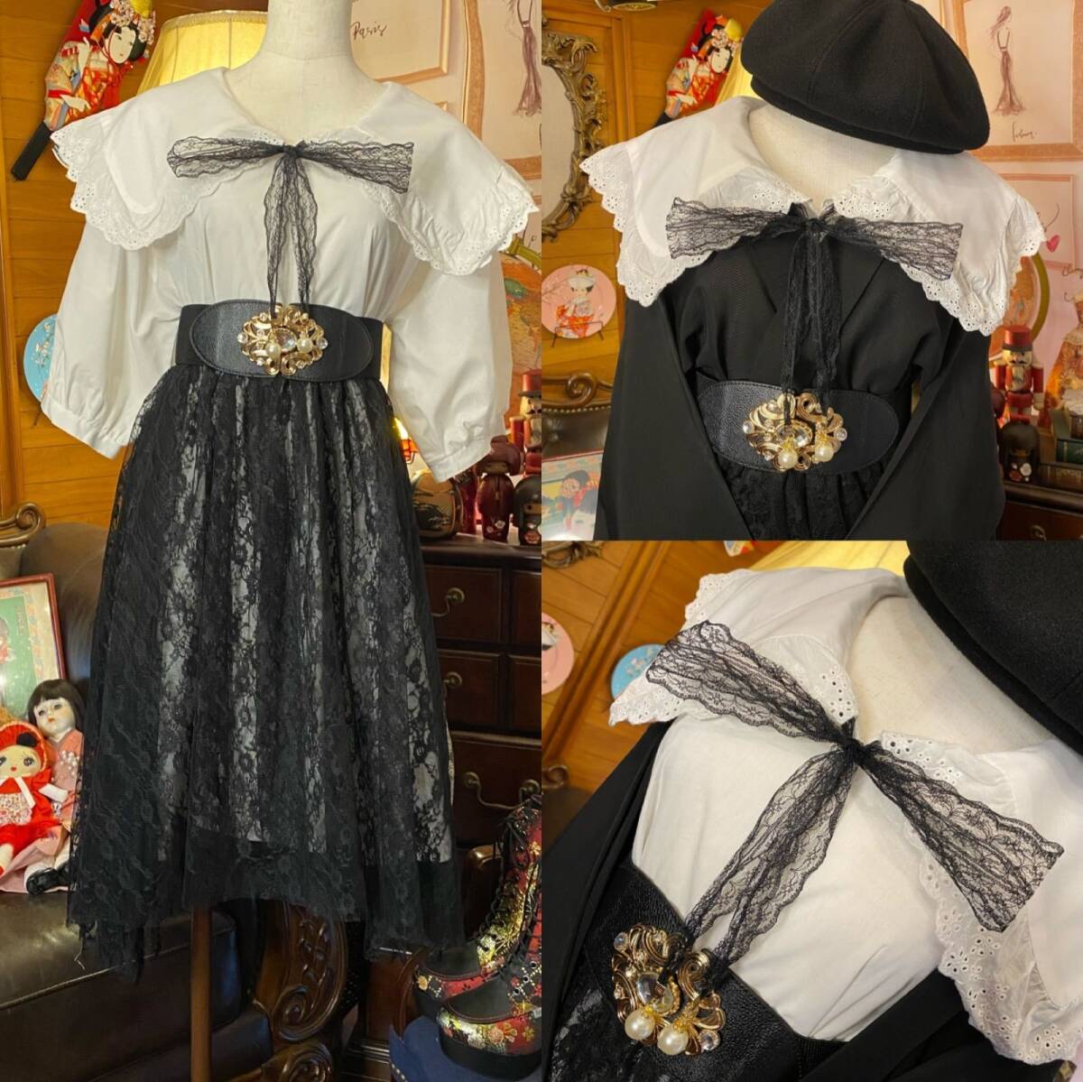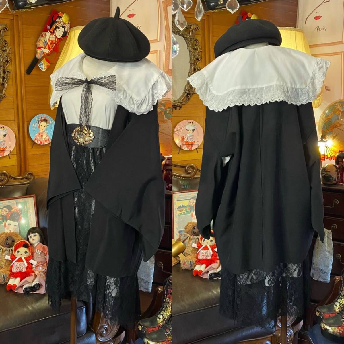 【 和洋折衷 コーディネート 夏羽織りコーデ まとめ売り レトロ クラシカル 和装 セレクト 古着 黒/ブラック×白/ホワイト系 5点セット C-526 】