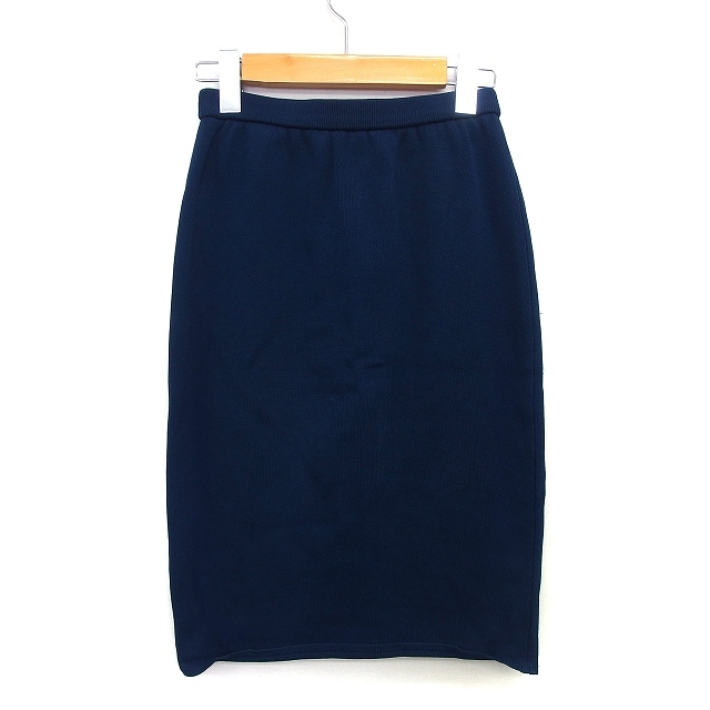 ルシェルブルー LE CIEL BLEU ニット スカート 台形 膝丈 無地 シンプル 切替リブ 38 ネイビー 紺 /HT16 レディース